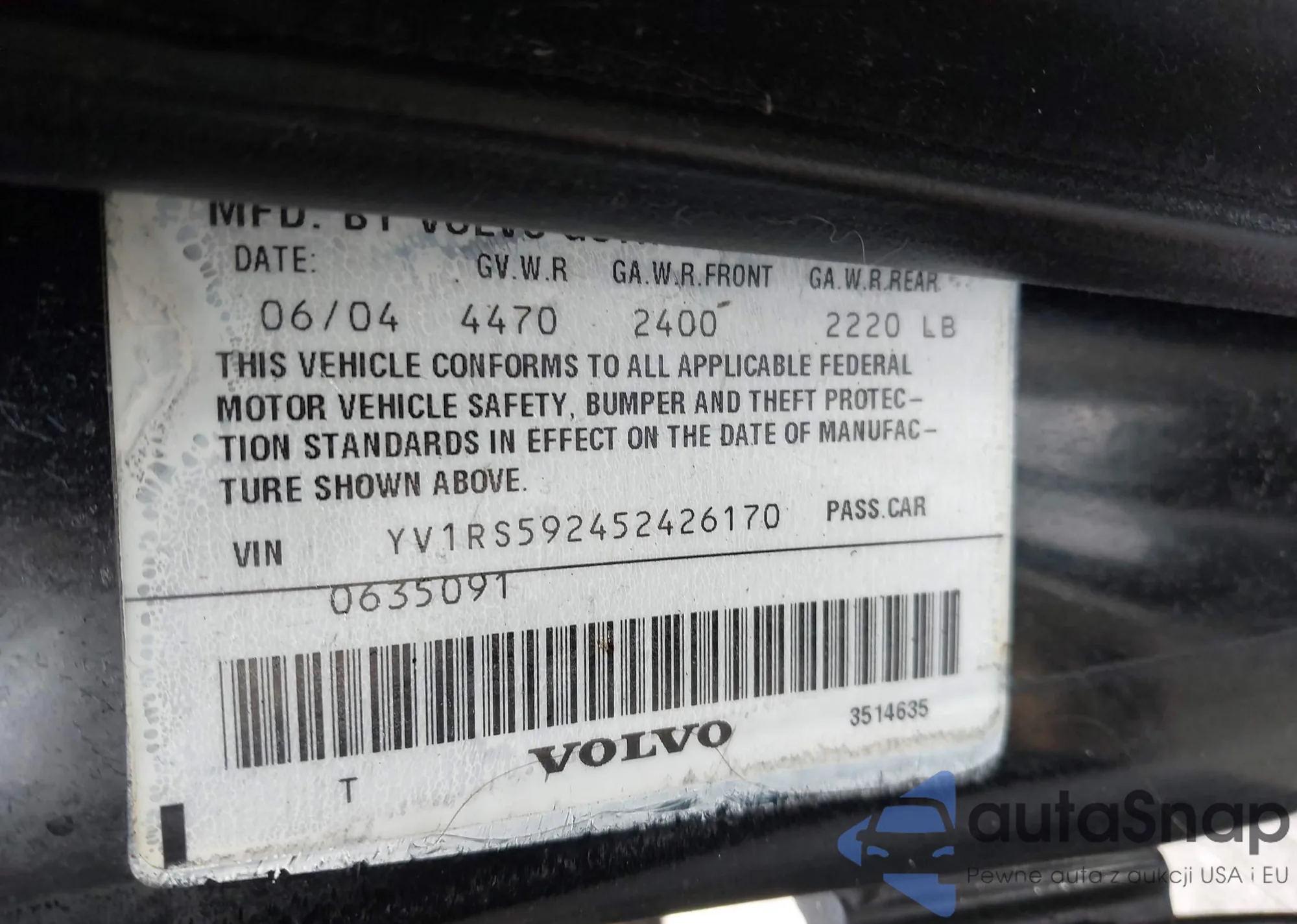 VIN: YV1RS592452426170