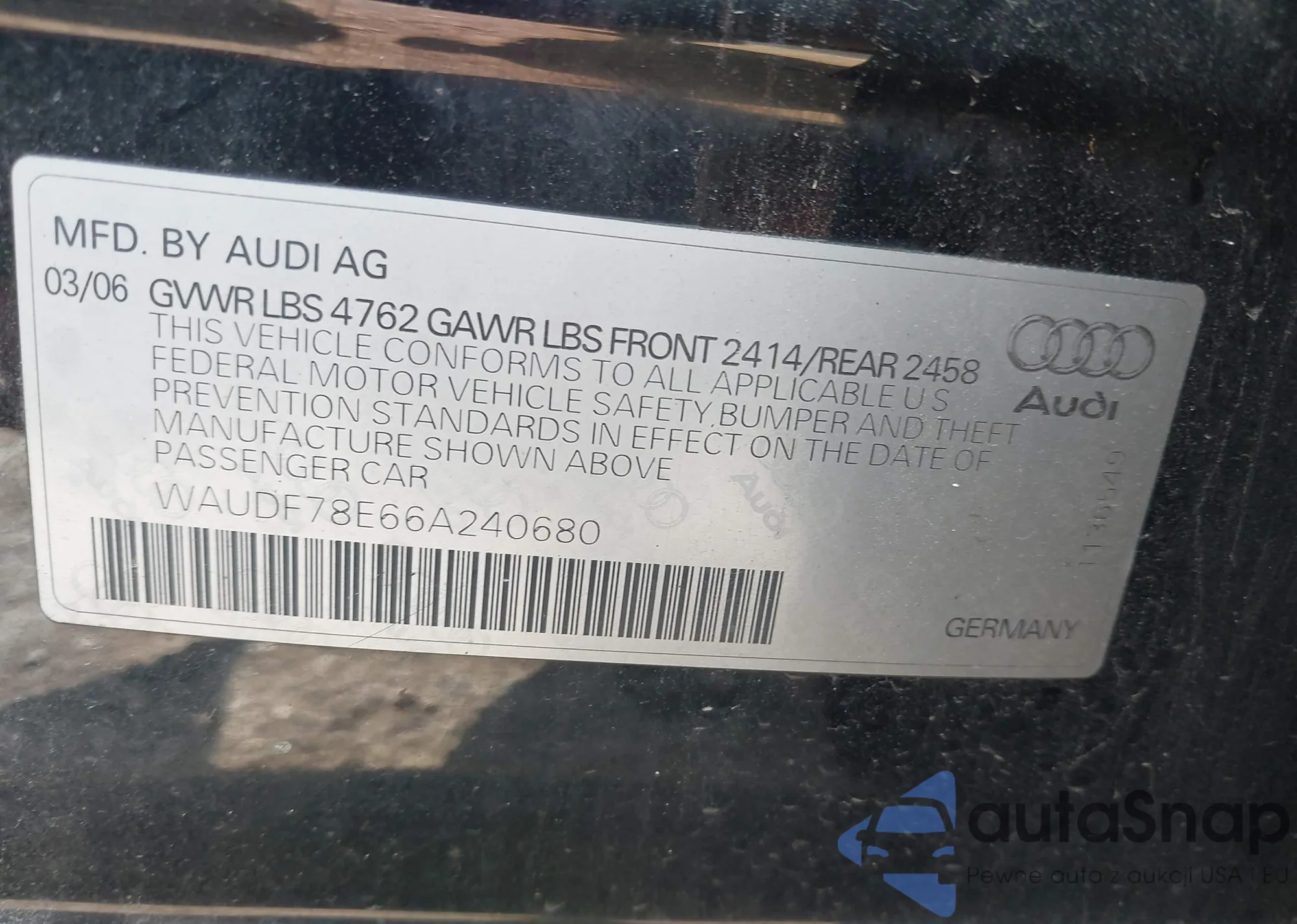 VIN: WAUDF78E66A240680