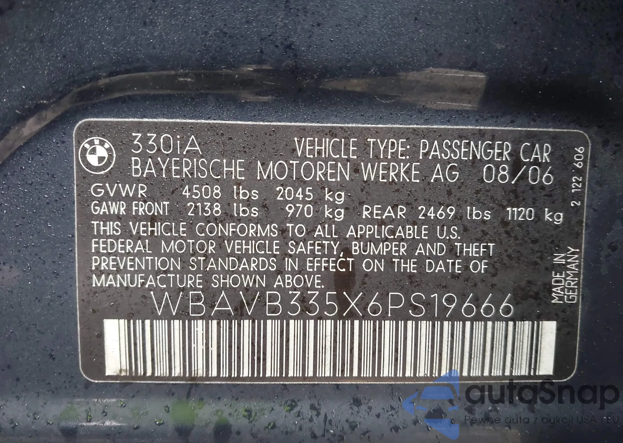 VIN: WBAVB335X6PS19666