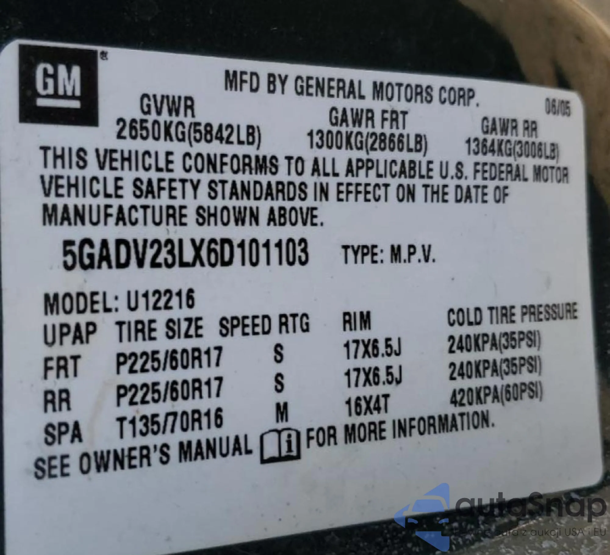 VIN: 5GADV23LX6D101103