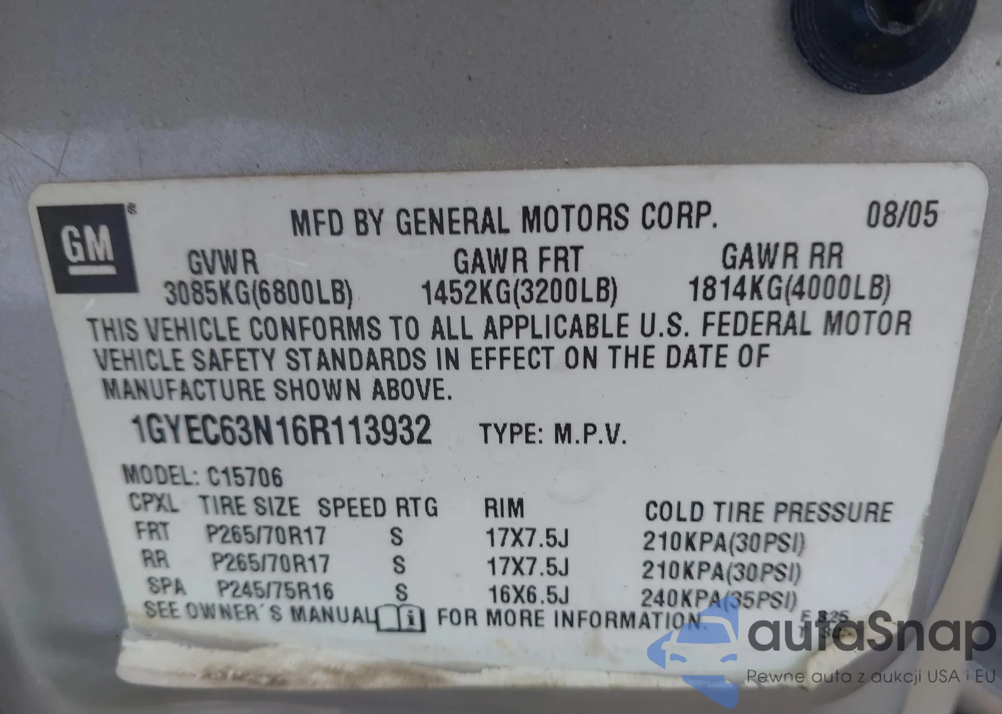 VIN: 1GYEC63N16R113932