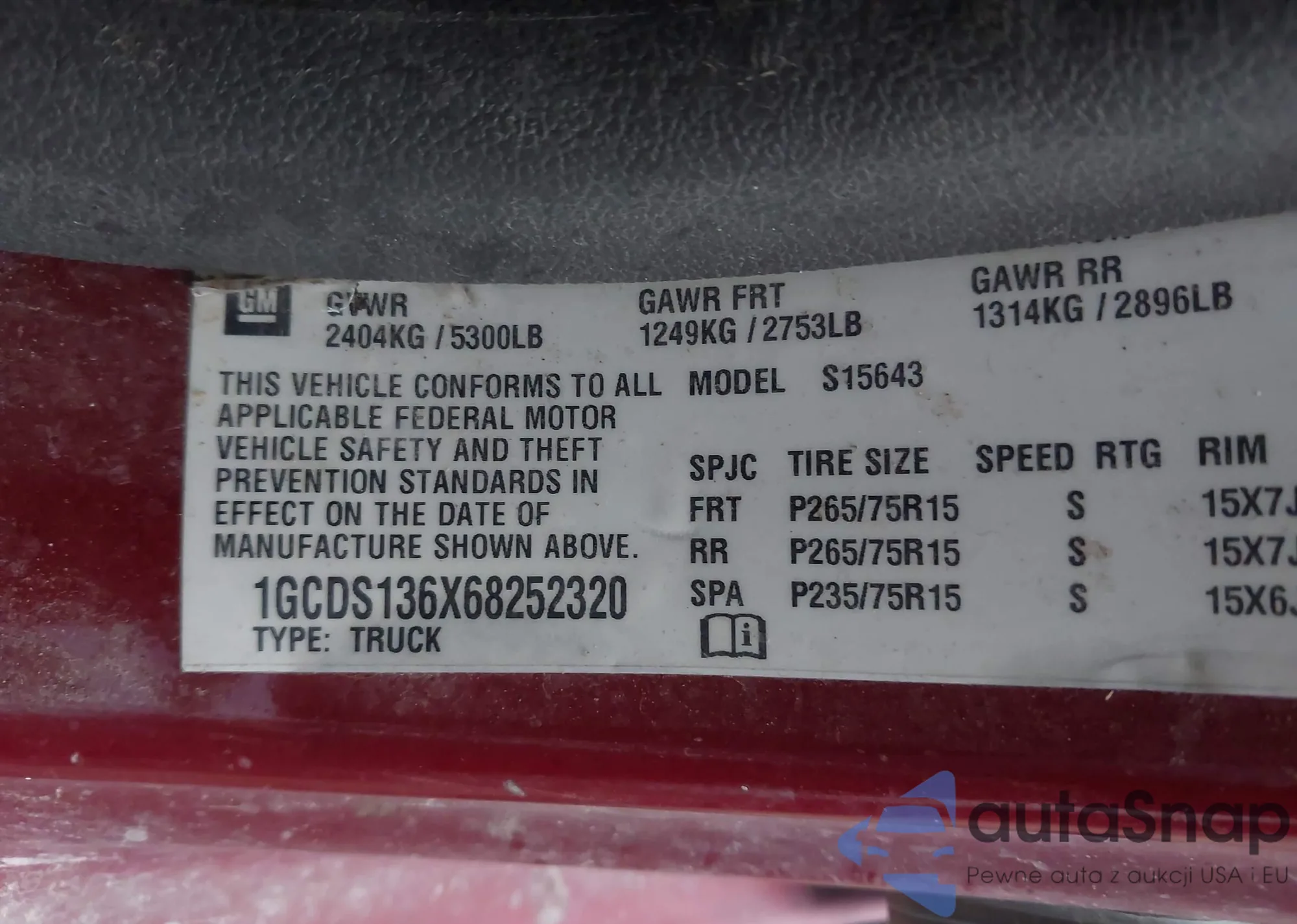 • VIN: 1GCDS136X68252320