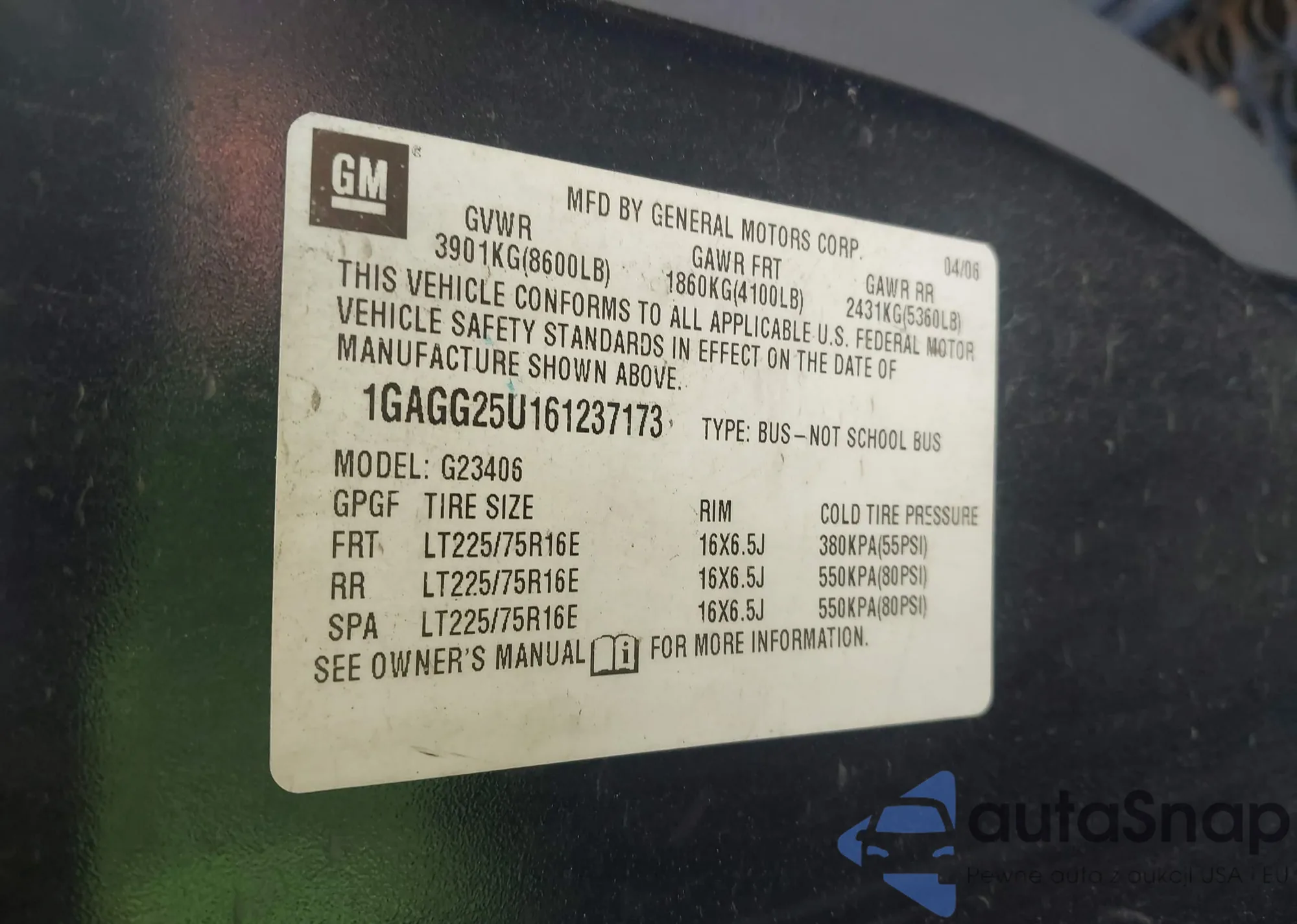 VIN: 1GAGG25U161237173