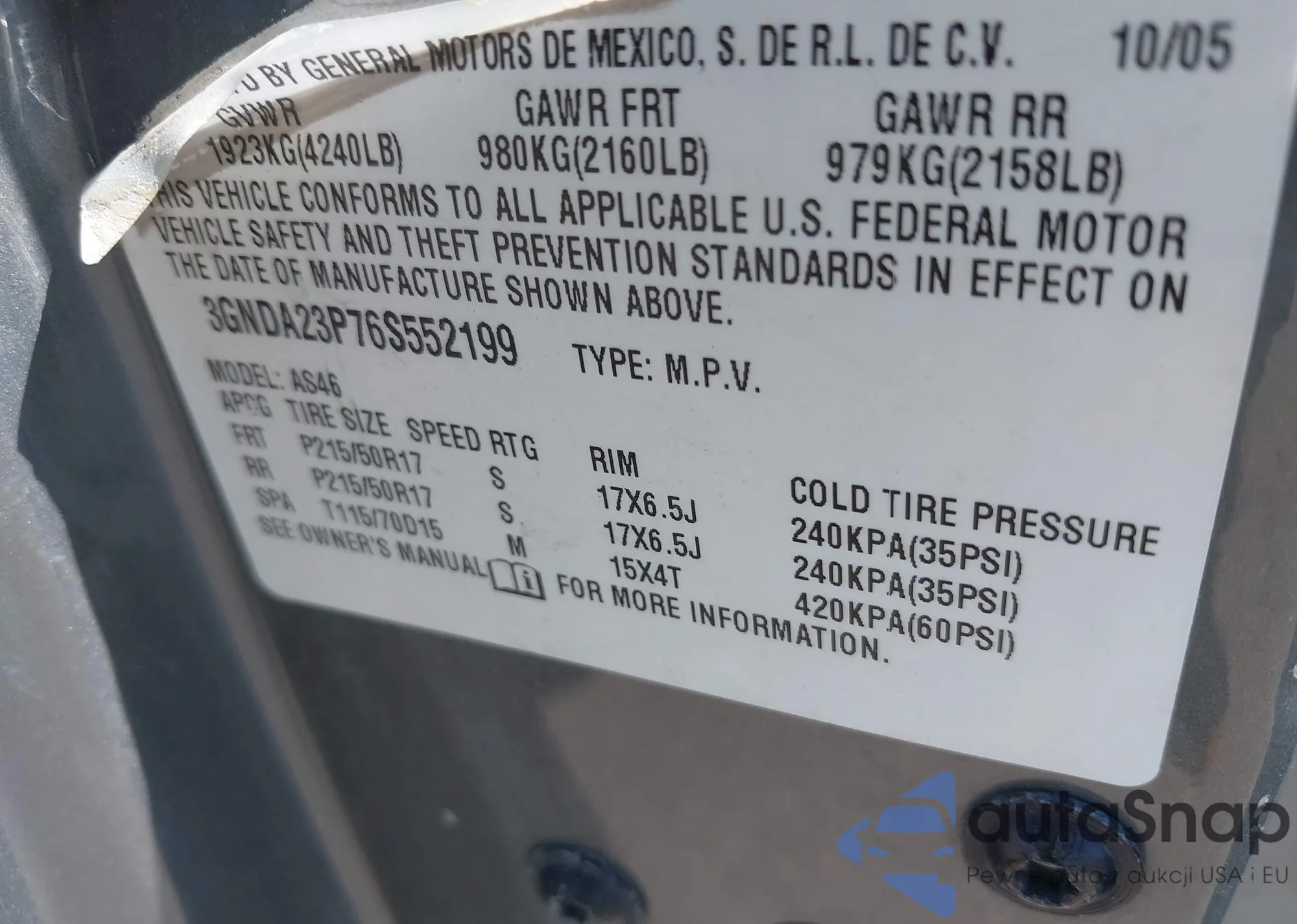VIN: 3GNDA23P76S552199