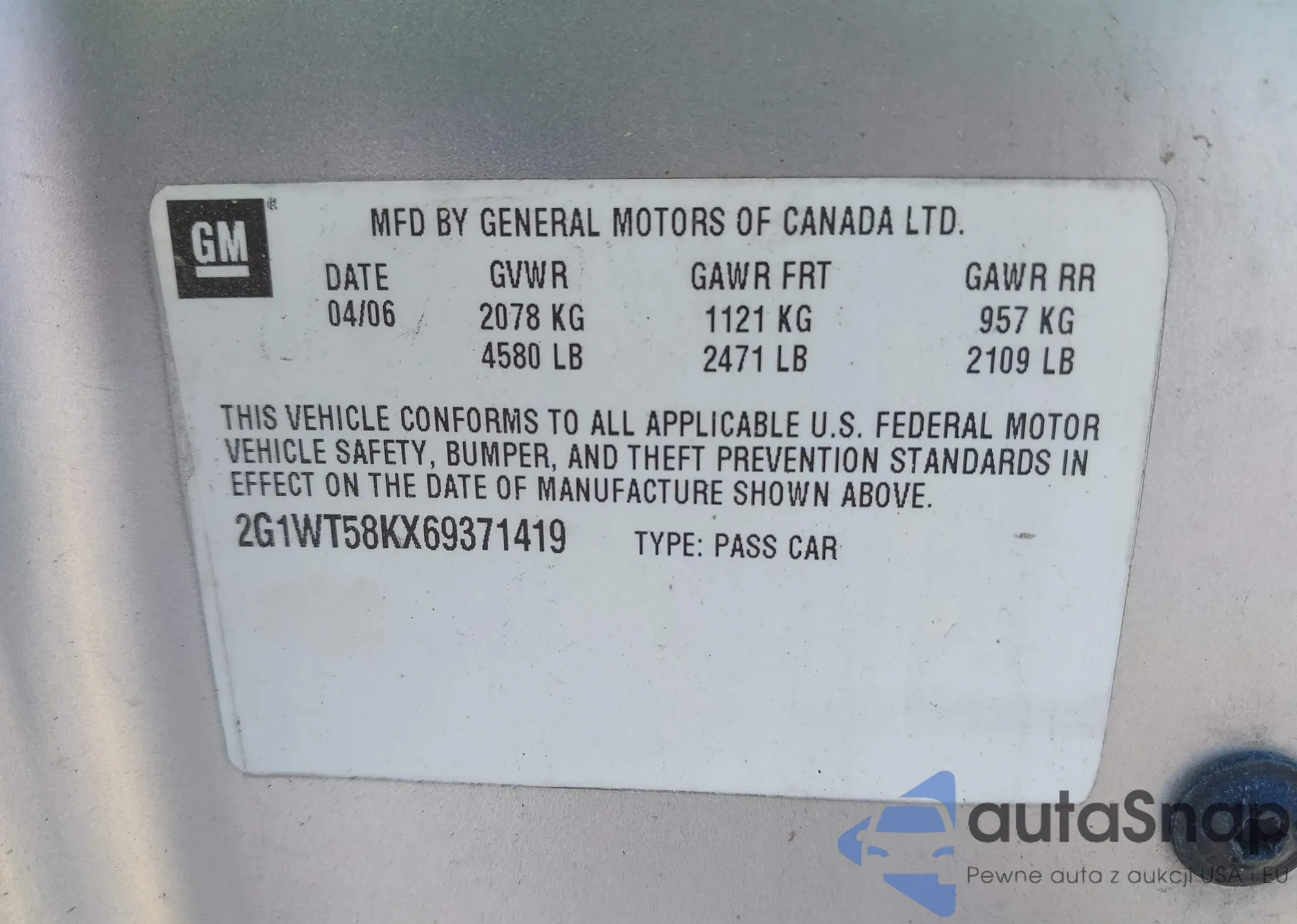 • VIN: 2G1WT58KX69371419