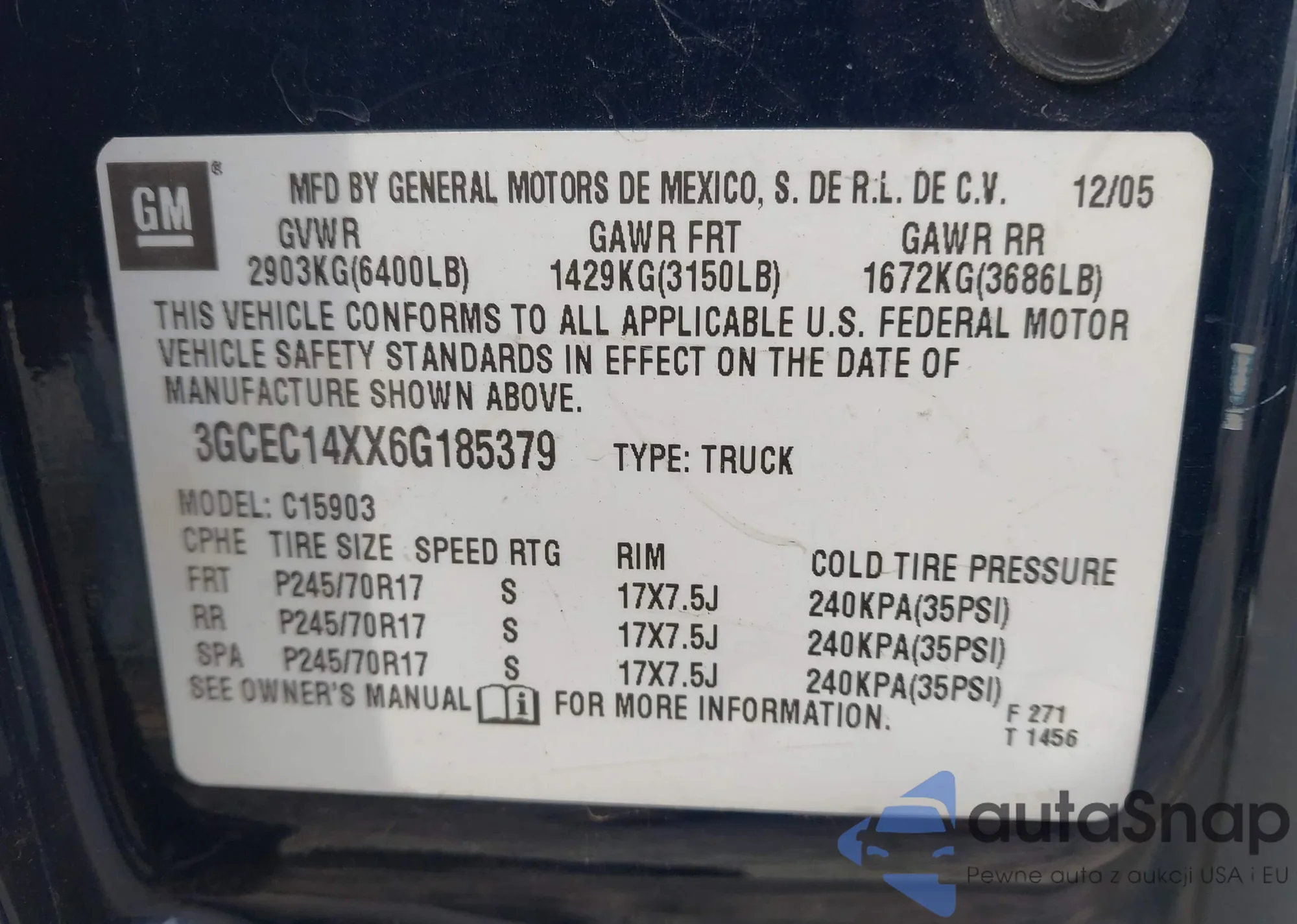 VIN: 3GCEC14XX6G185379