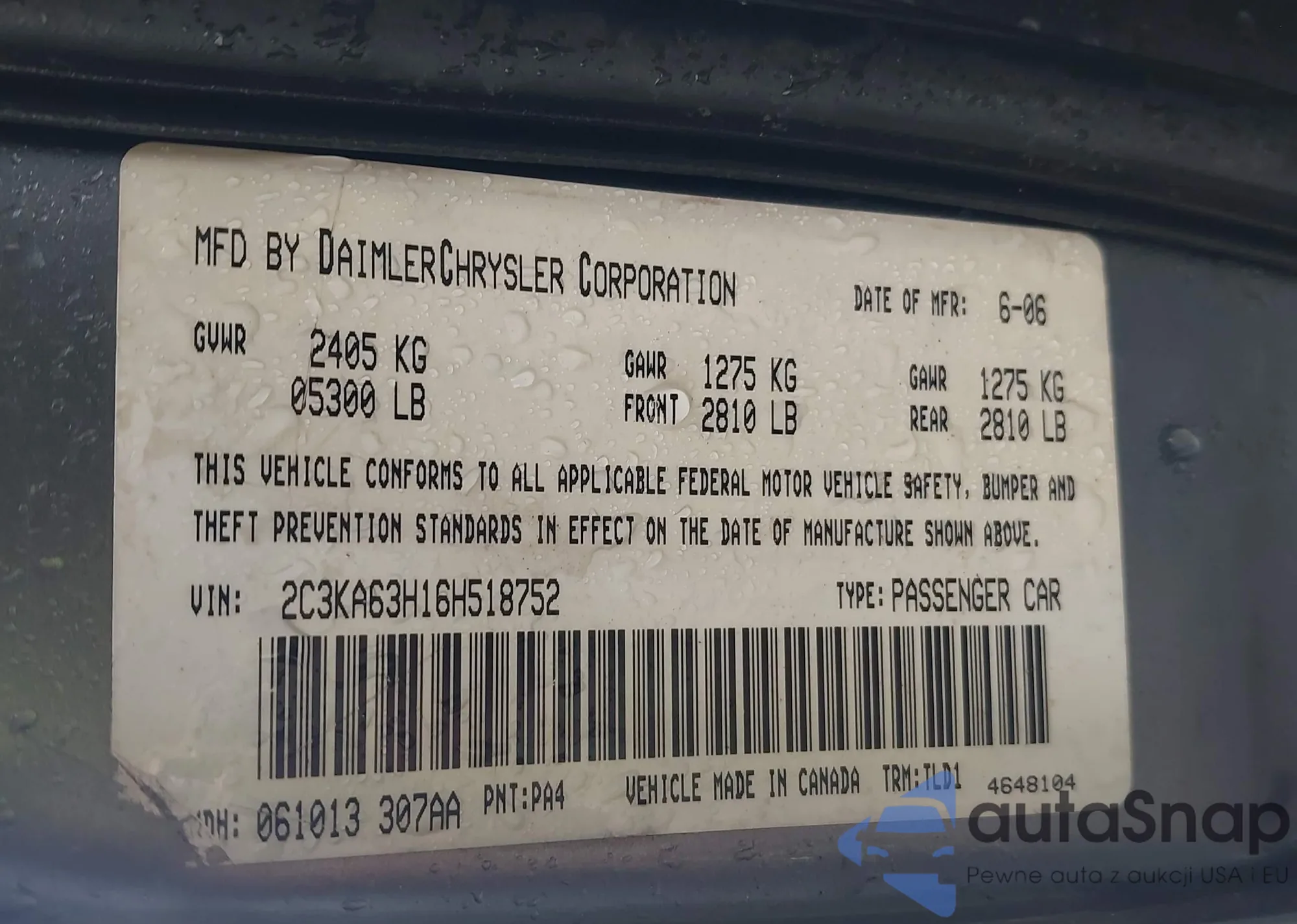 VIN: 2C3KA63H16H518752