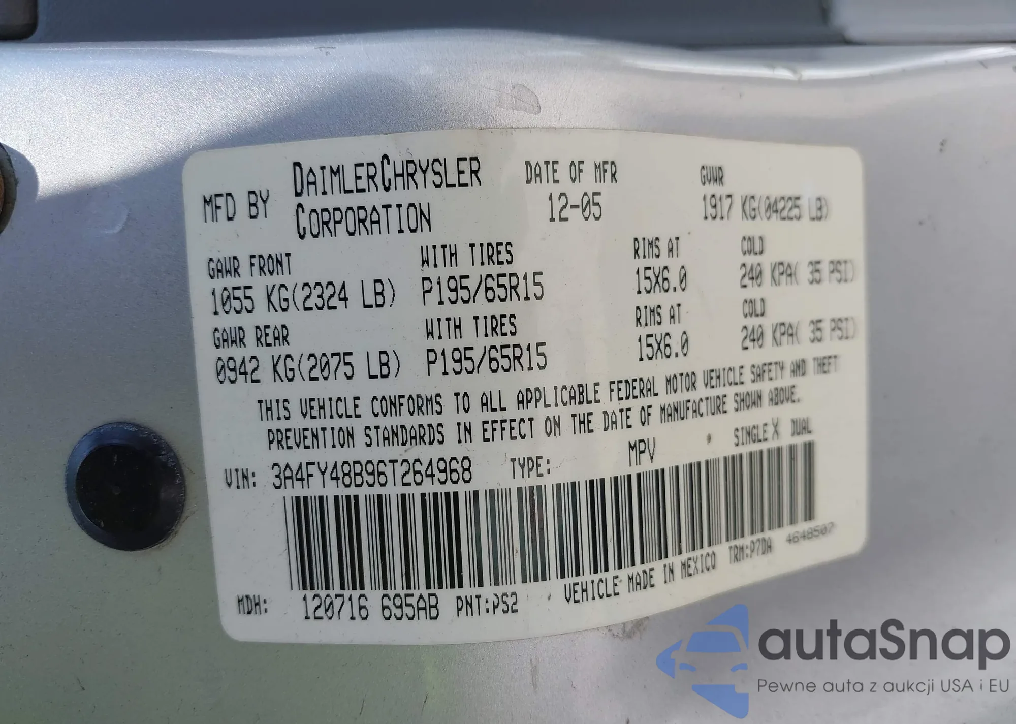VIN: 3A4FY48B96T264968
