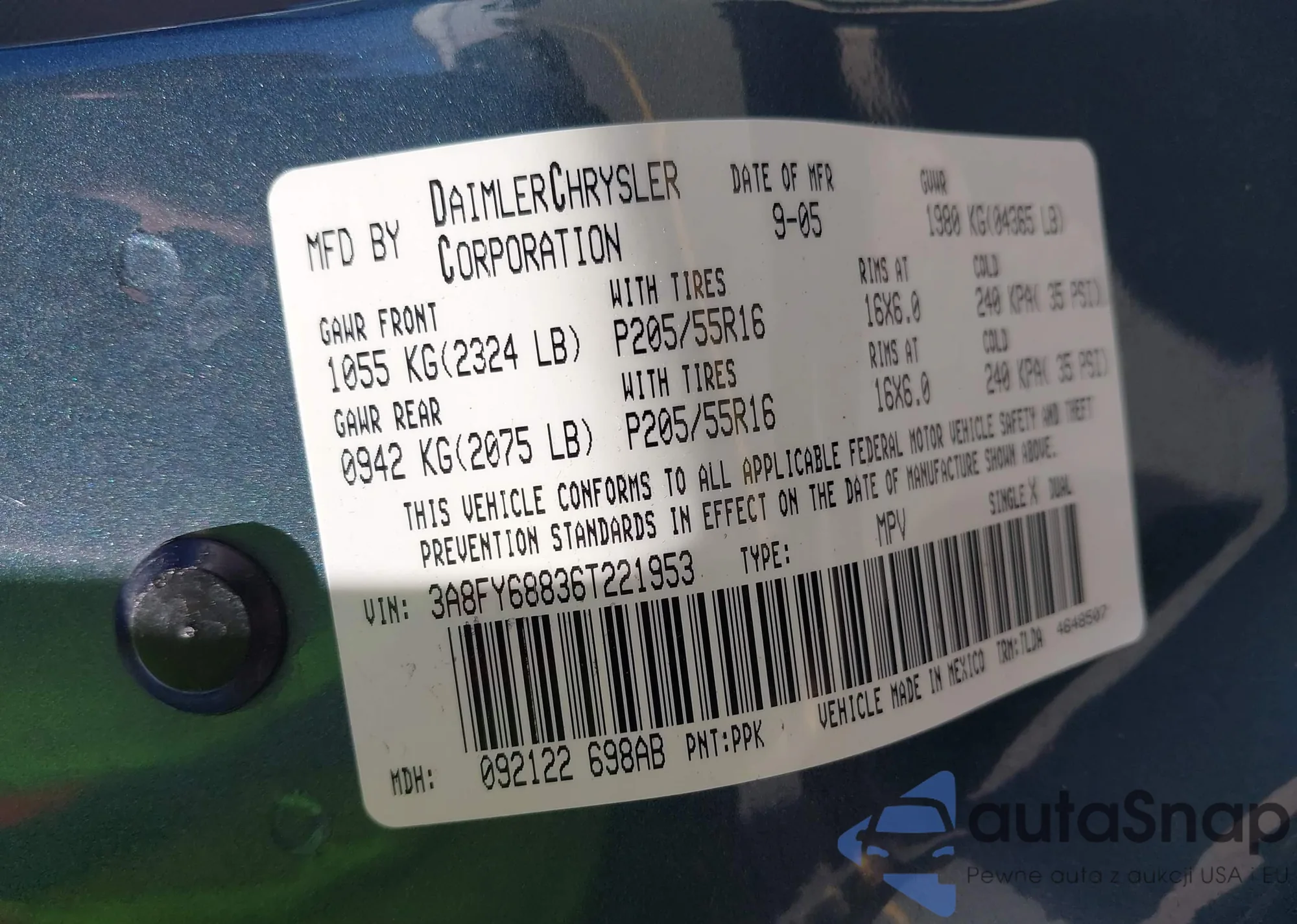 VIN: 3A8FY68836T221953
