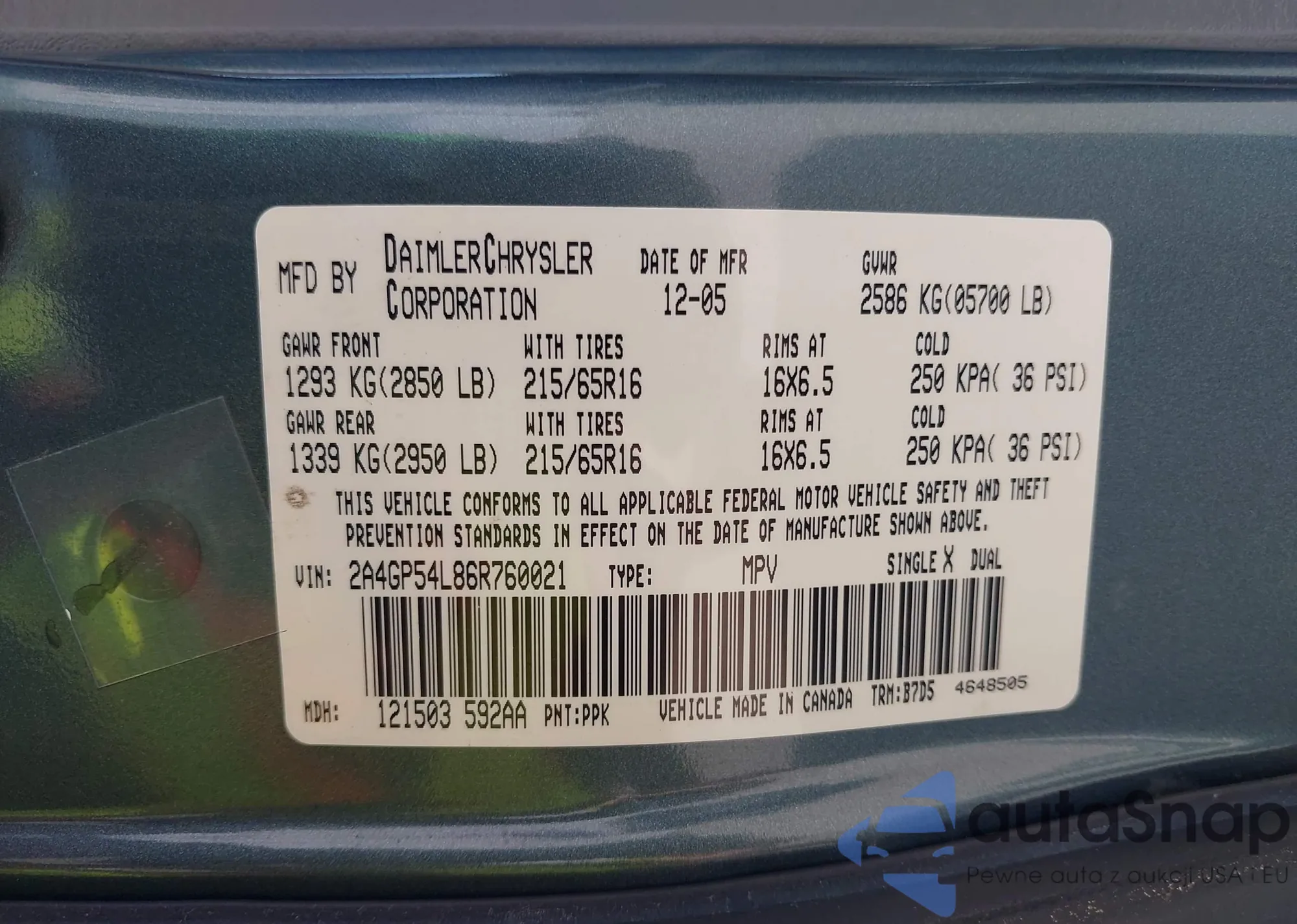 VIN: 2A4GP54L86R760021