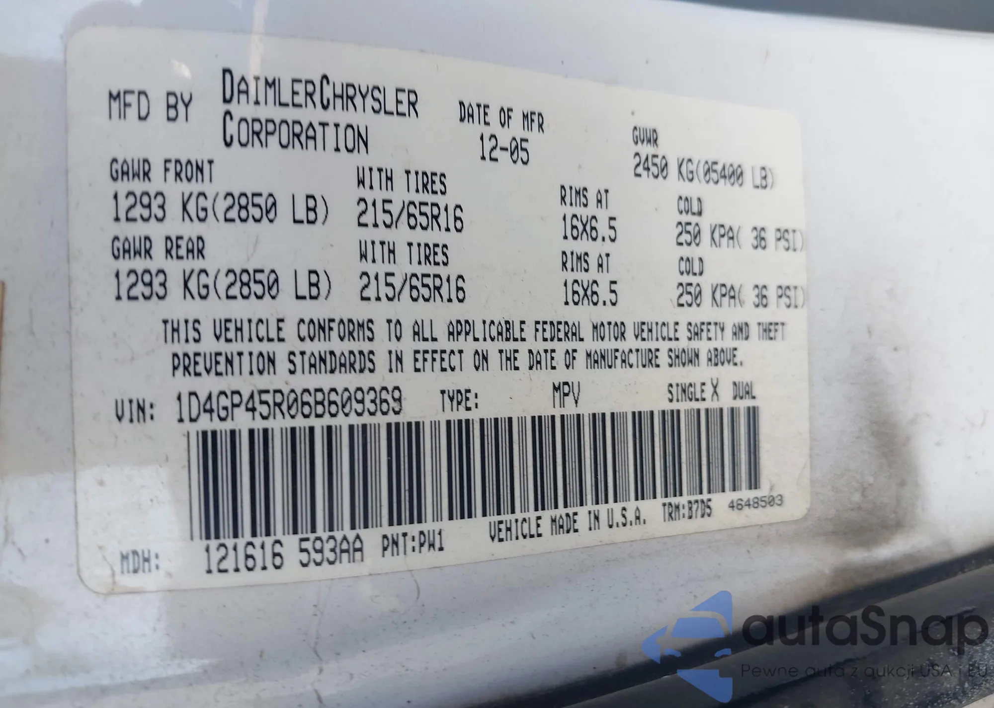 Dodge Caravan 2006 – Vehicle History (Sold at IAAI)