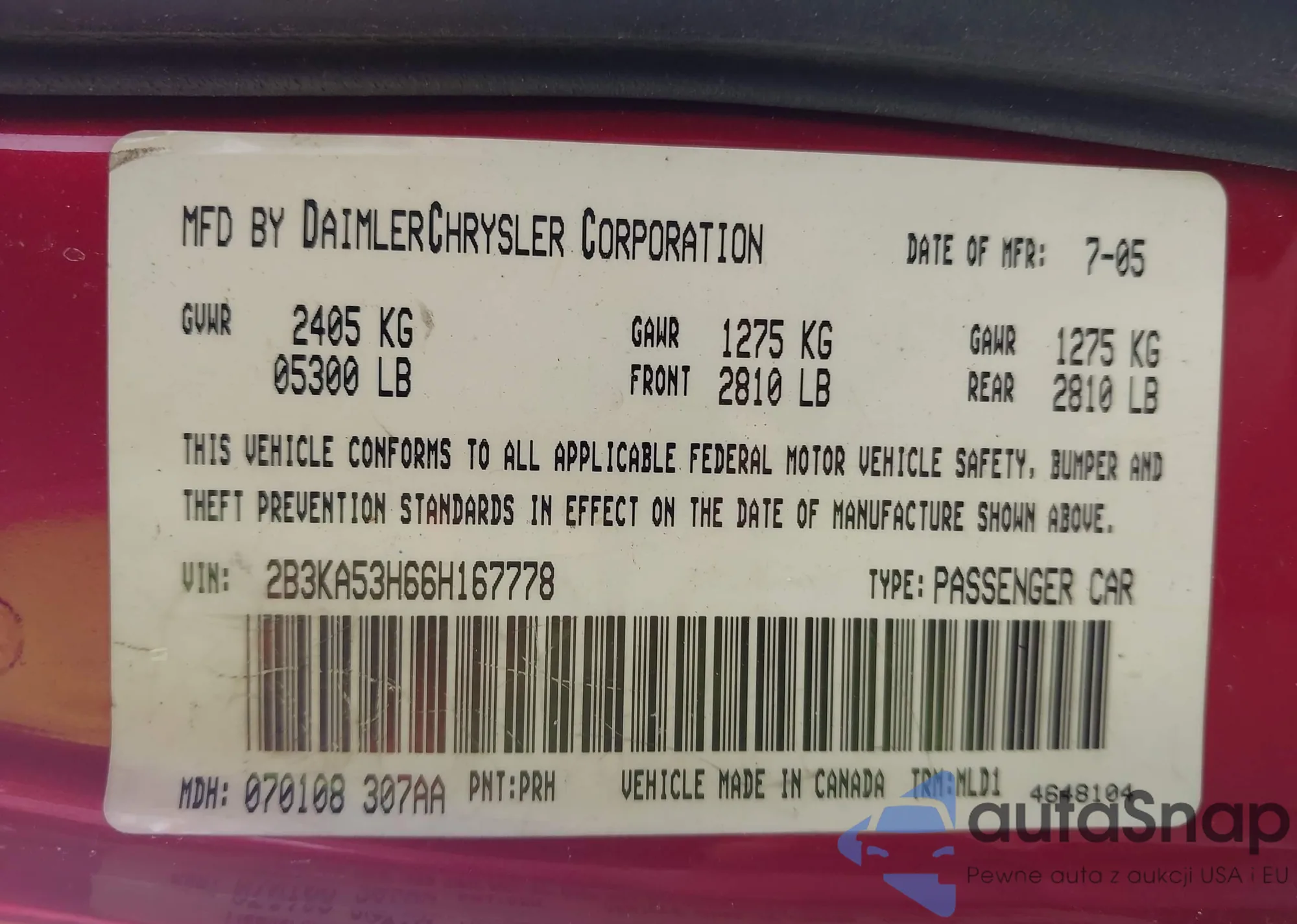 VIN: 2B3KA53H66H167778