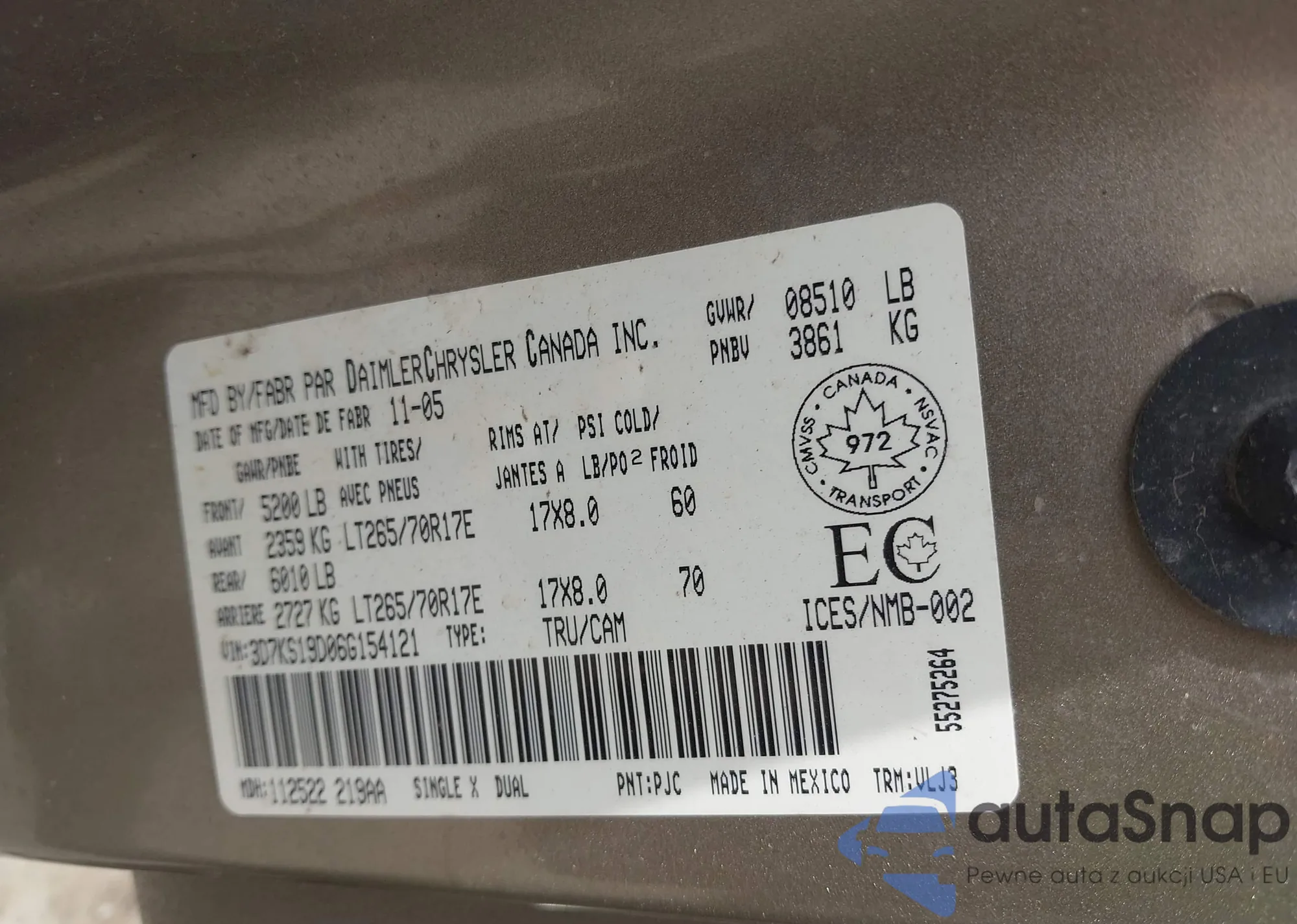 VIN: 3D7KS19D06G154121