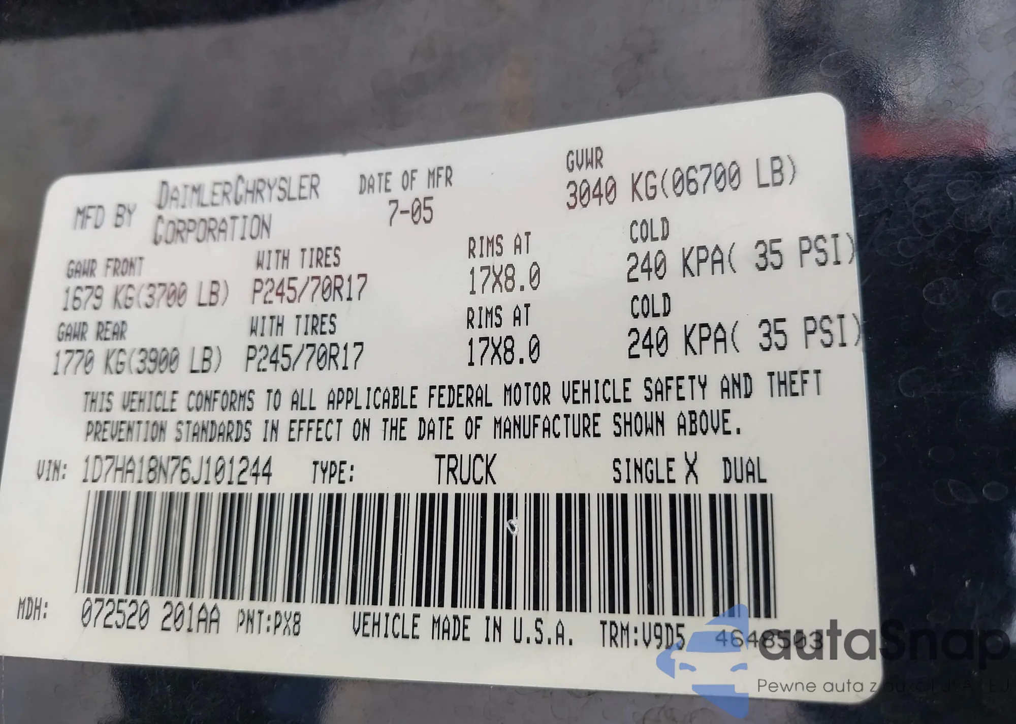 VIN: 1D7HA18N76J101244