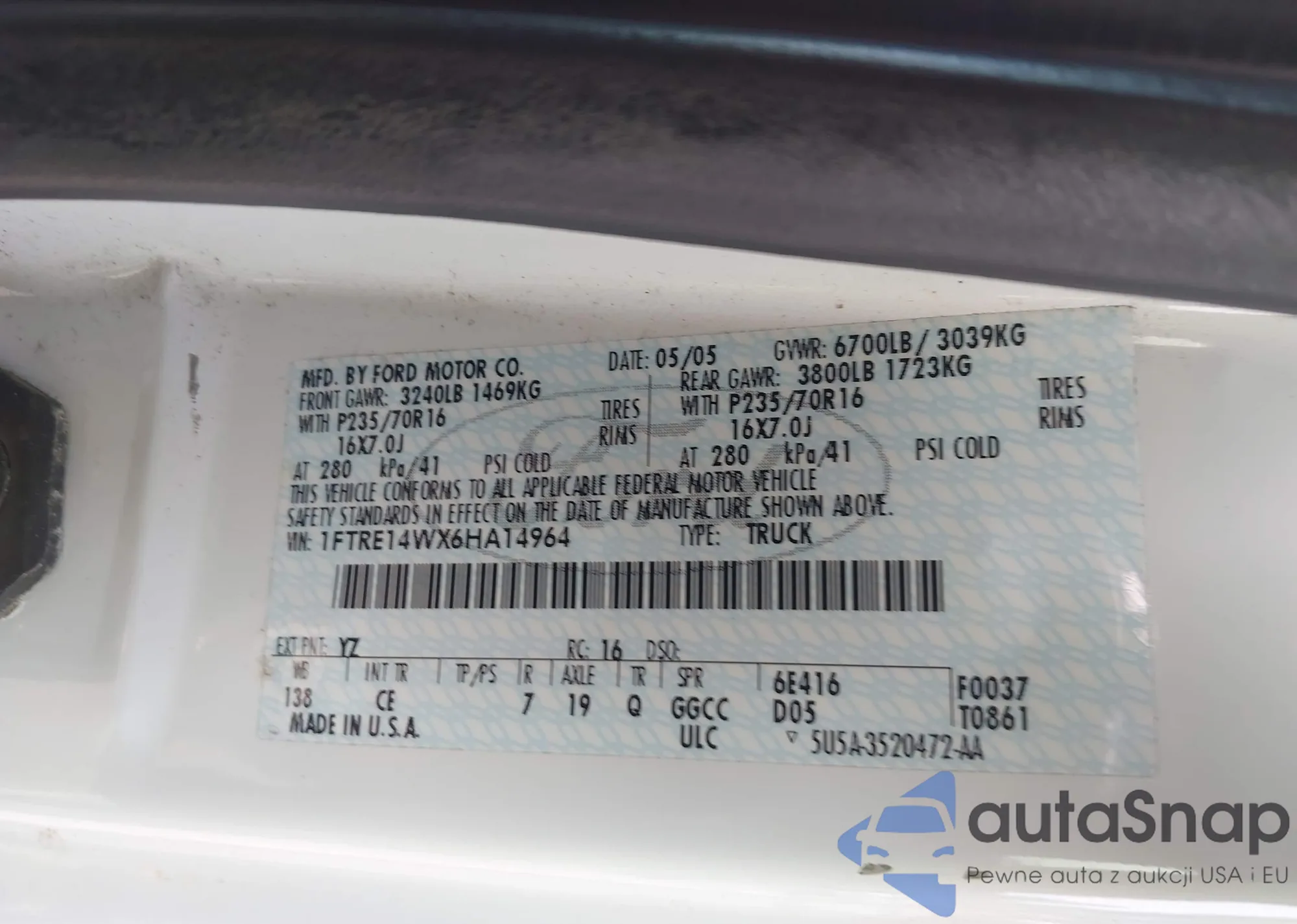 VIN: 1FTRE14WX6HA14964