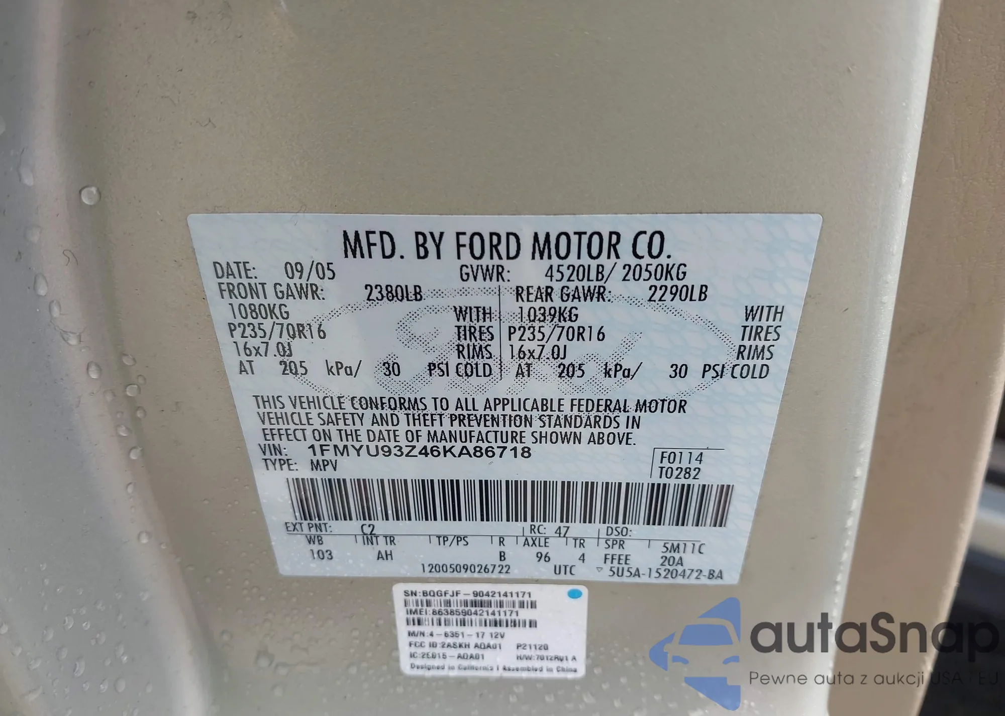 VIN: 1FMYU93Z46KA86718