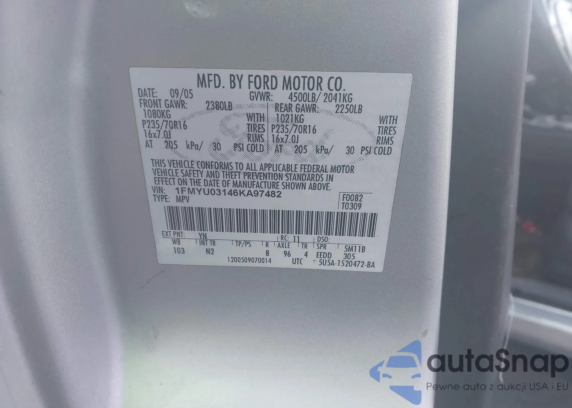 VIN: 1FMYU03146KA97482