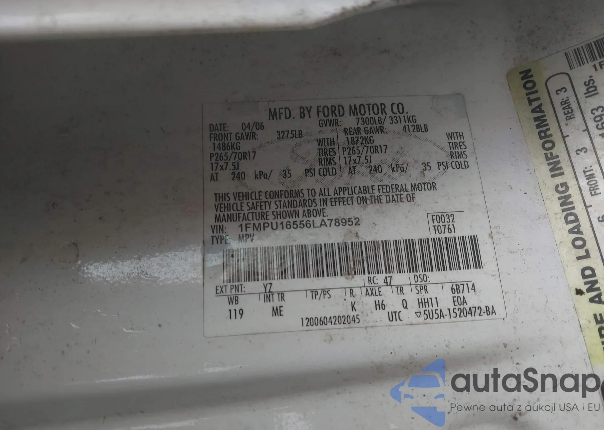 The car Ford Expedition 2006 (VIN 1FMPU16556LA78952) is sold by an unverified seller. We recommend checking the Carfax report and confirming registration possibilities before purchase.