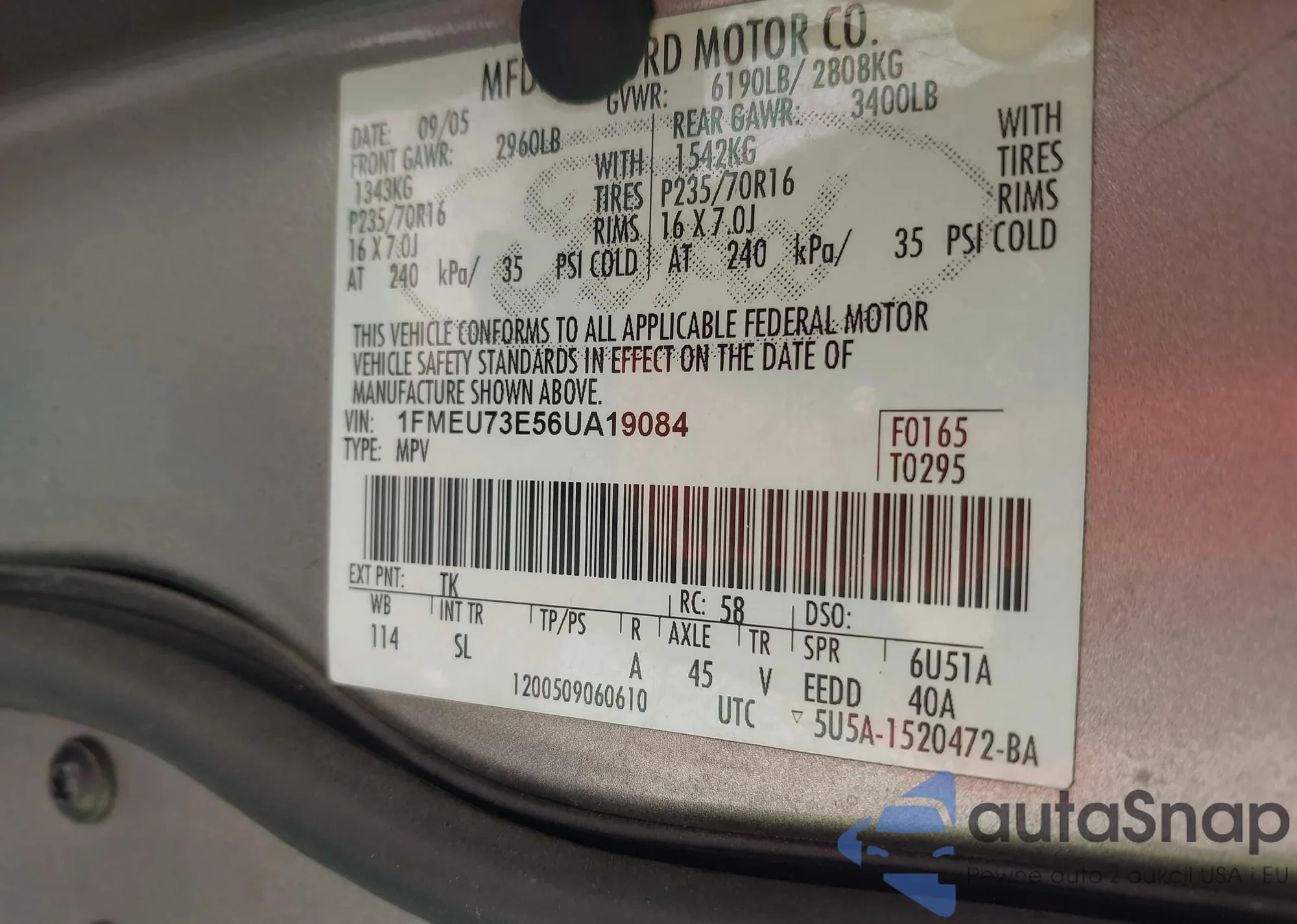 VIN: 1FMEU73E56UA19084
