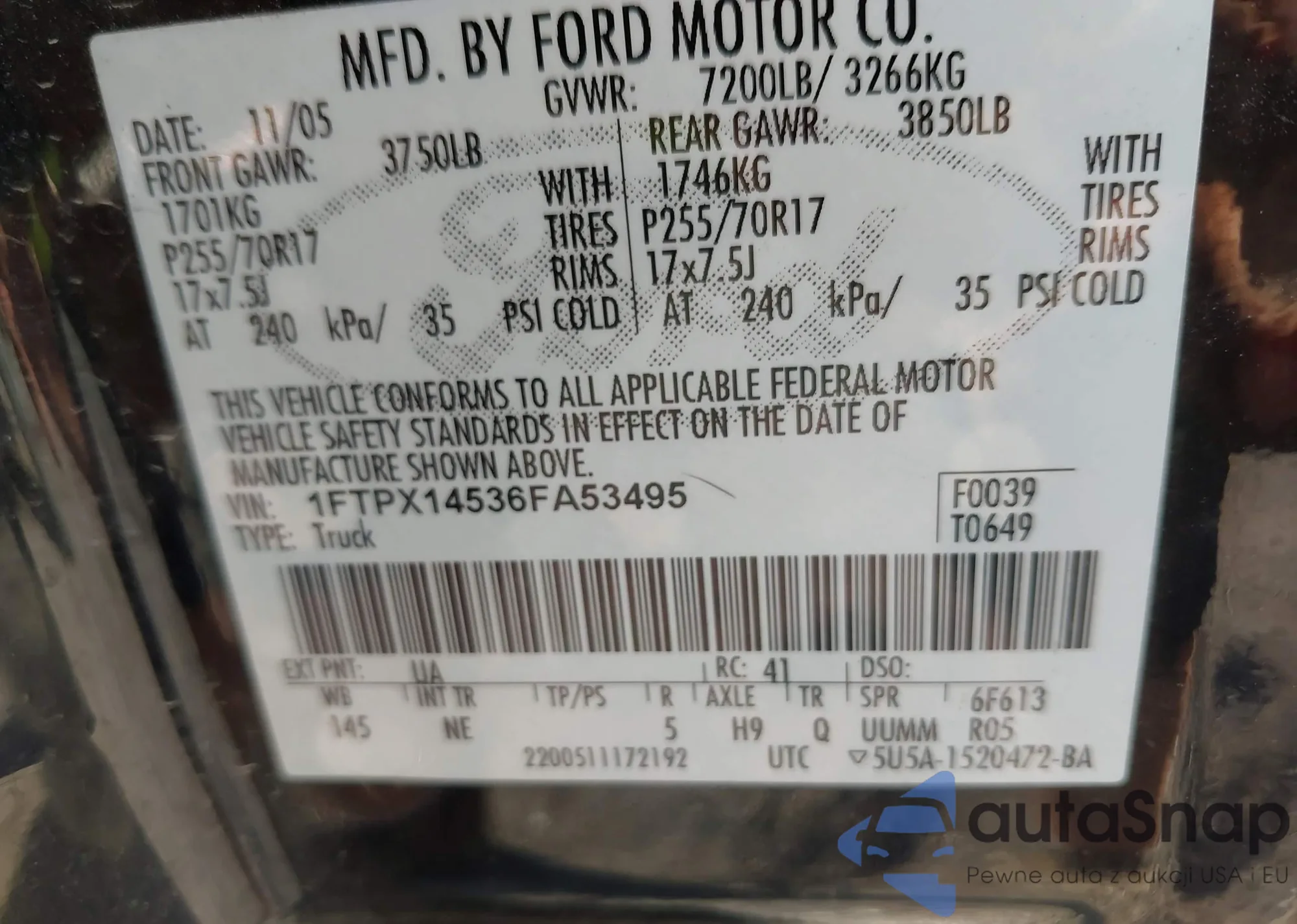 VIN: 1FTPX14536FA53495