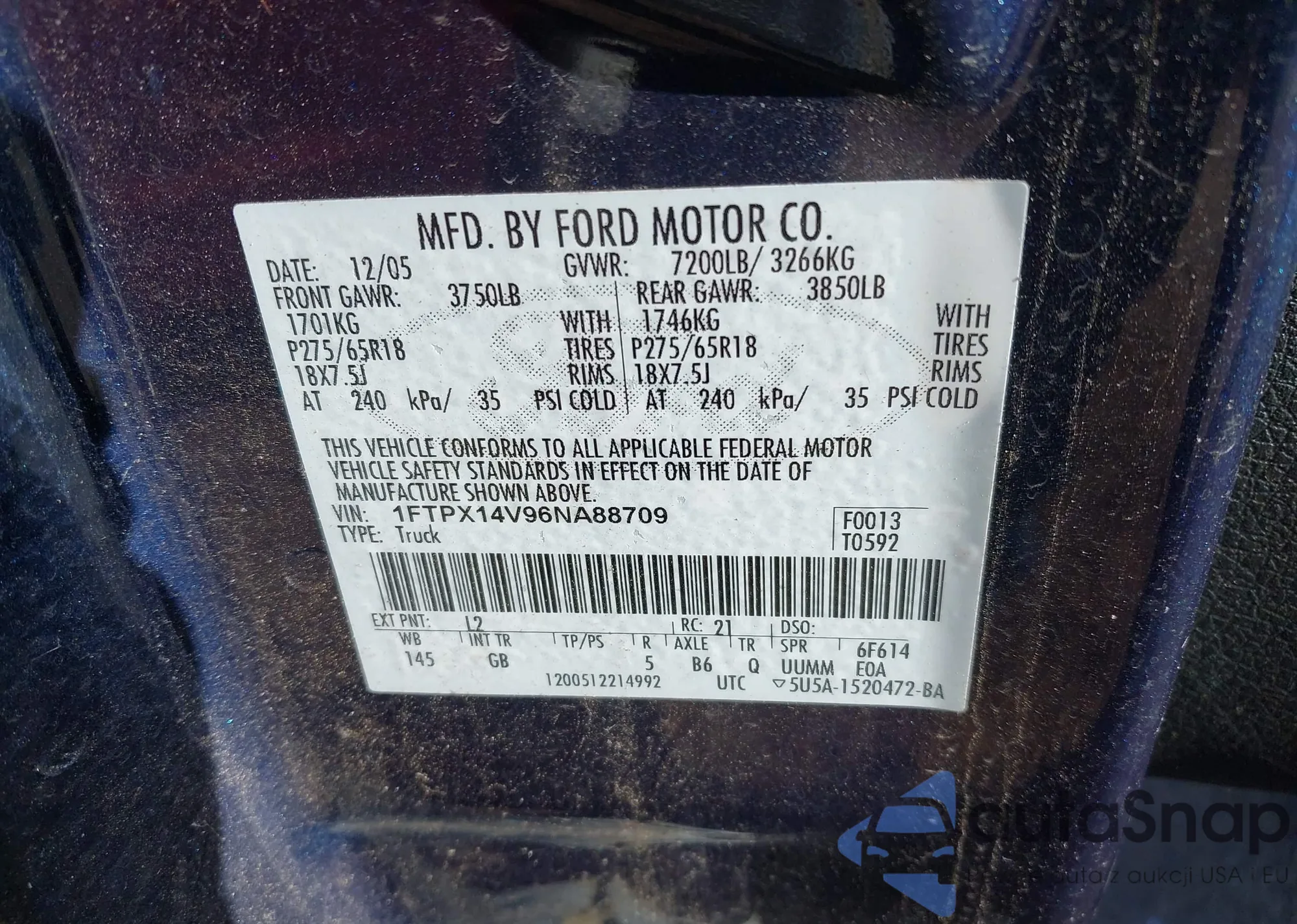 VIN: 1FTPX14V96NA88709