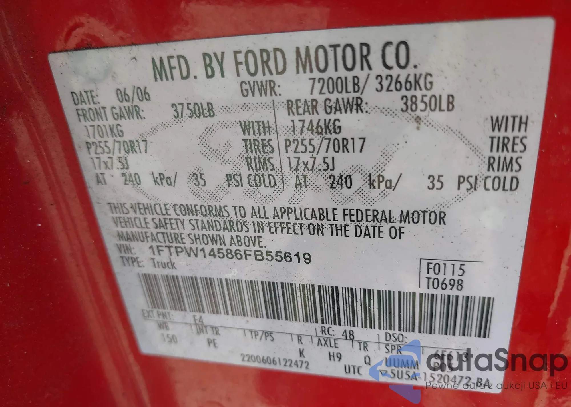 VIN: 1FTPW14586FB55619