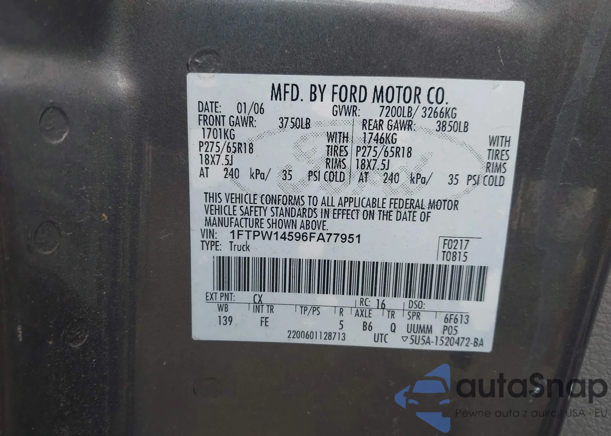 VIN: 1FTPW14596FA77951