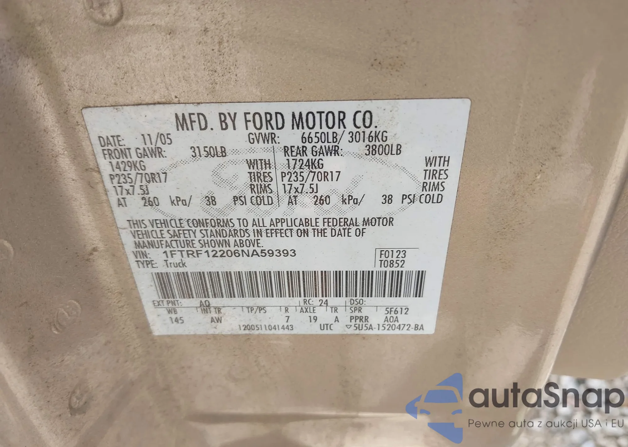 VIN: 1FTRF12206NA59393