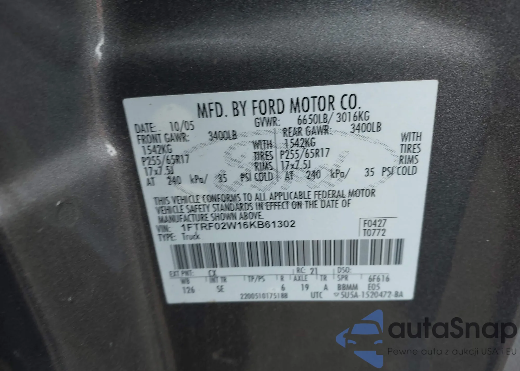 VIN: 1FTRF02W16KB61302