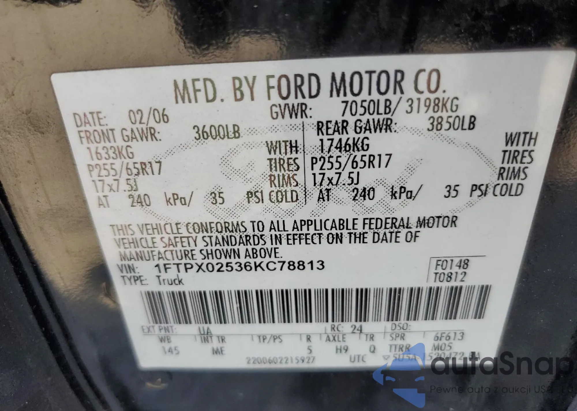 VIN: 1FTPX02536KC78813