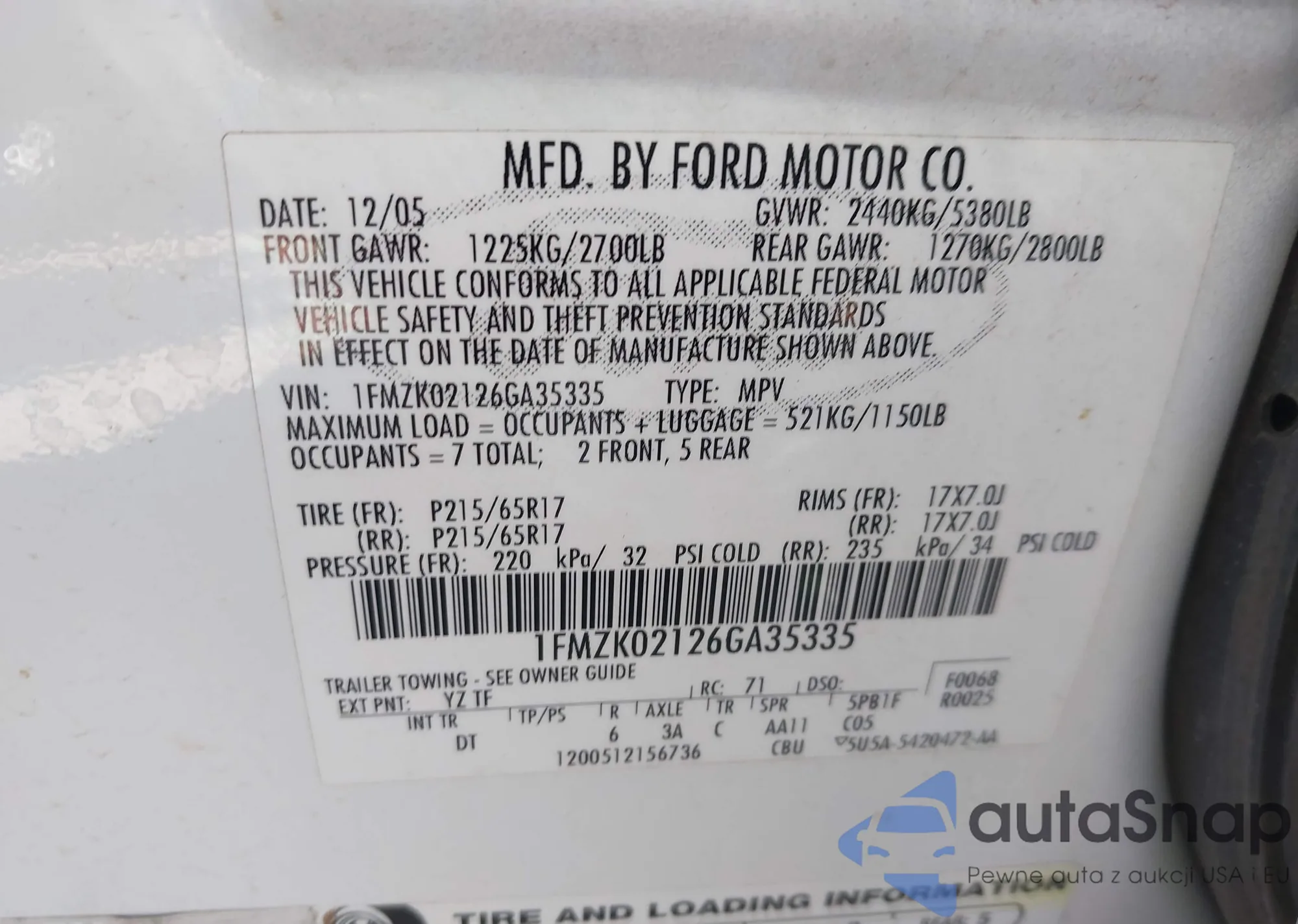 VIN: 1FMZK02126GA35335