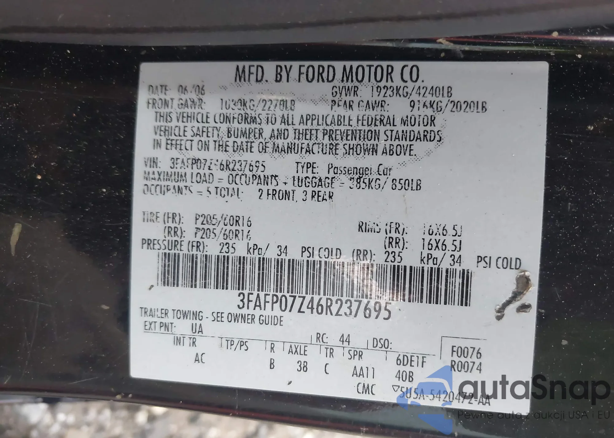 • VIN: 3FAFP07Z46R237695