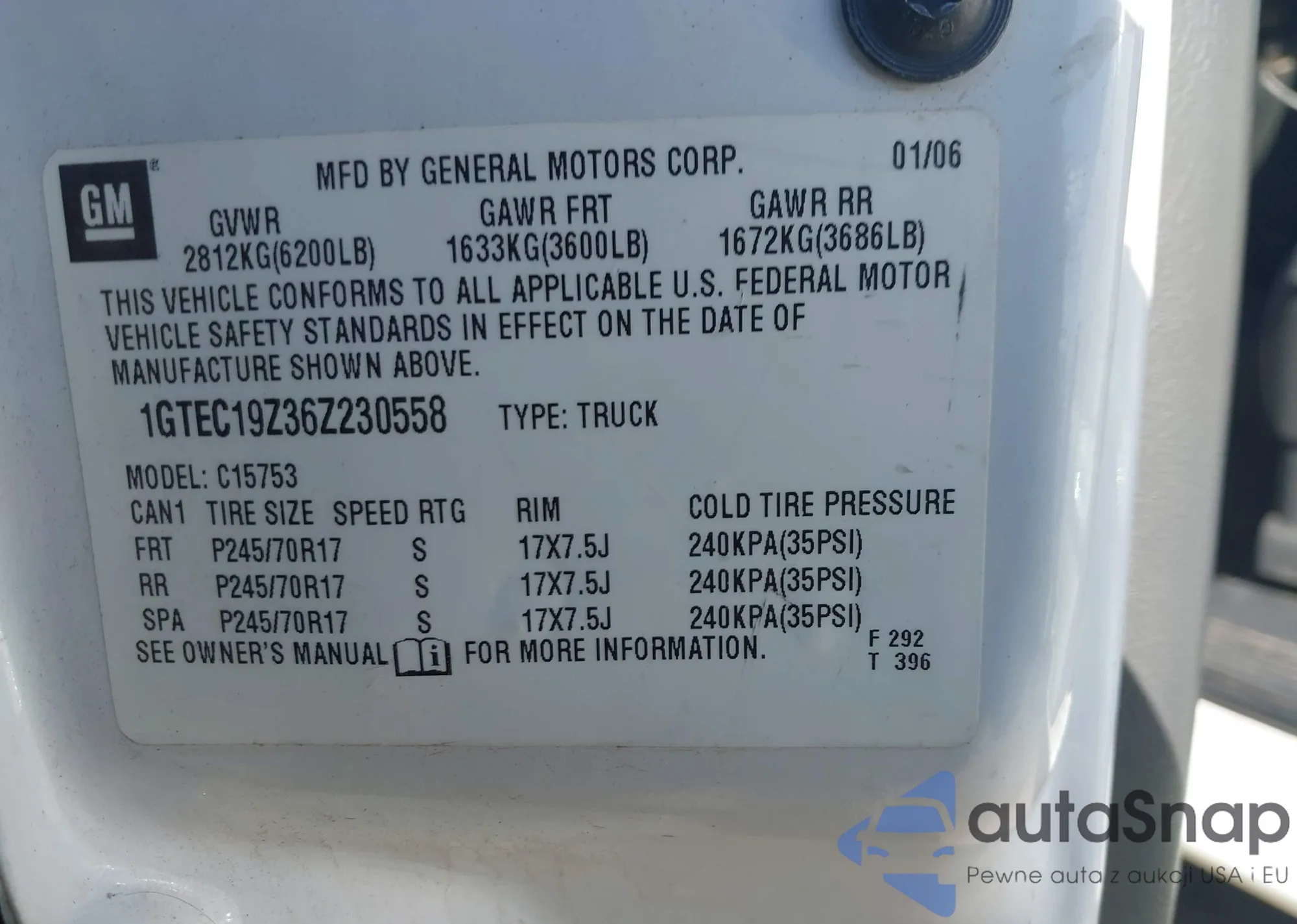 The car GMC Sierra 2006 (VIN 1GTEC19Z36Z230558) has not been auctioned before. The documents are clean, and the mileage matches or is below the market average. Sold by an insurance company – we recommend purchase. Delivery to the port will take approx. 6–8 weeks.
