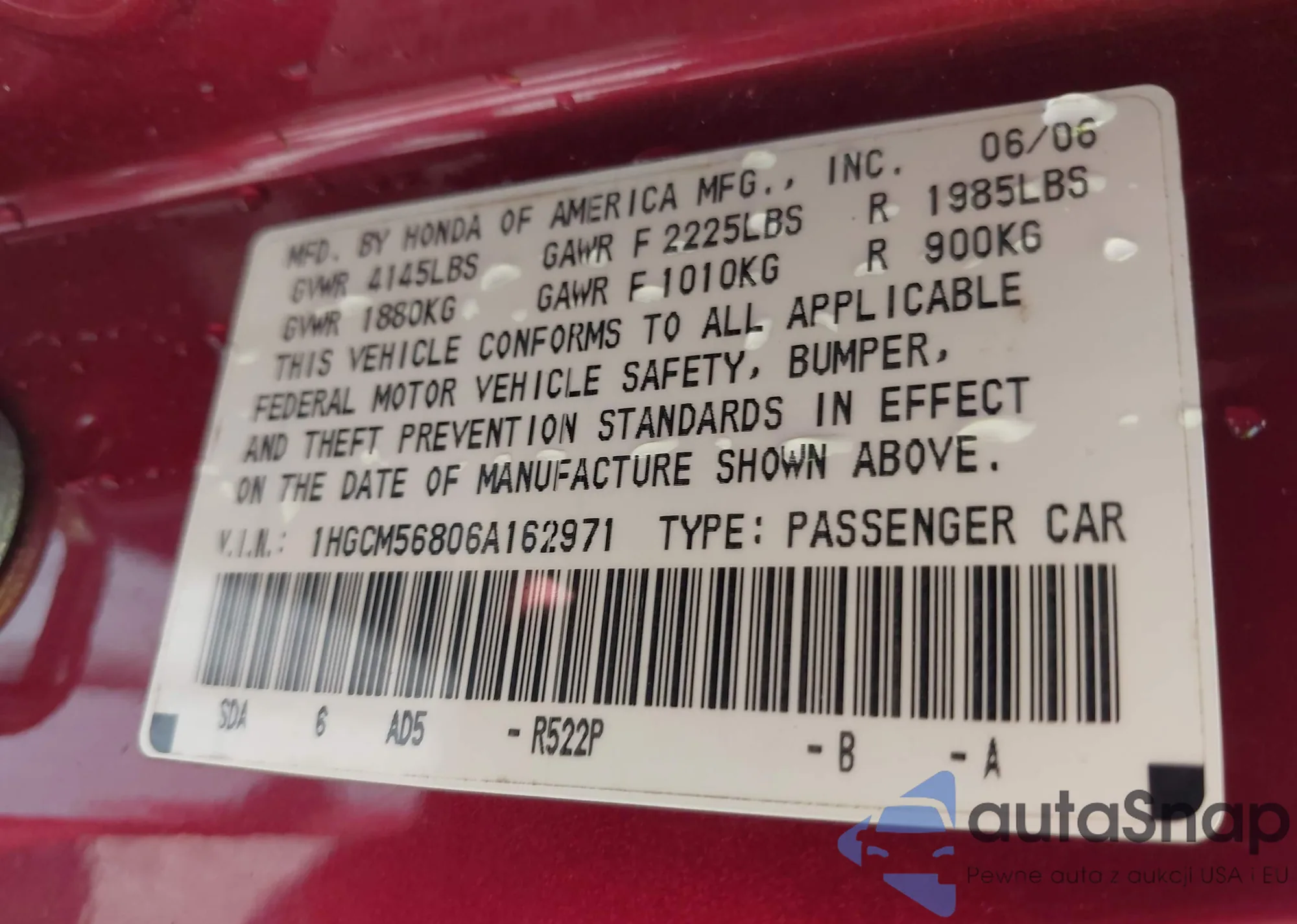 VIN: 1HGCM56806A162971