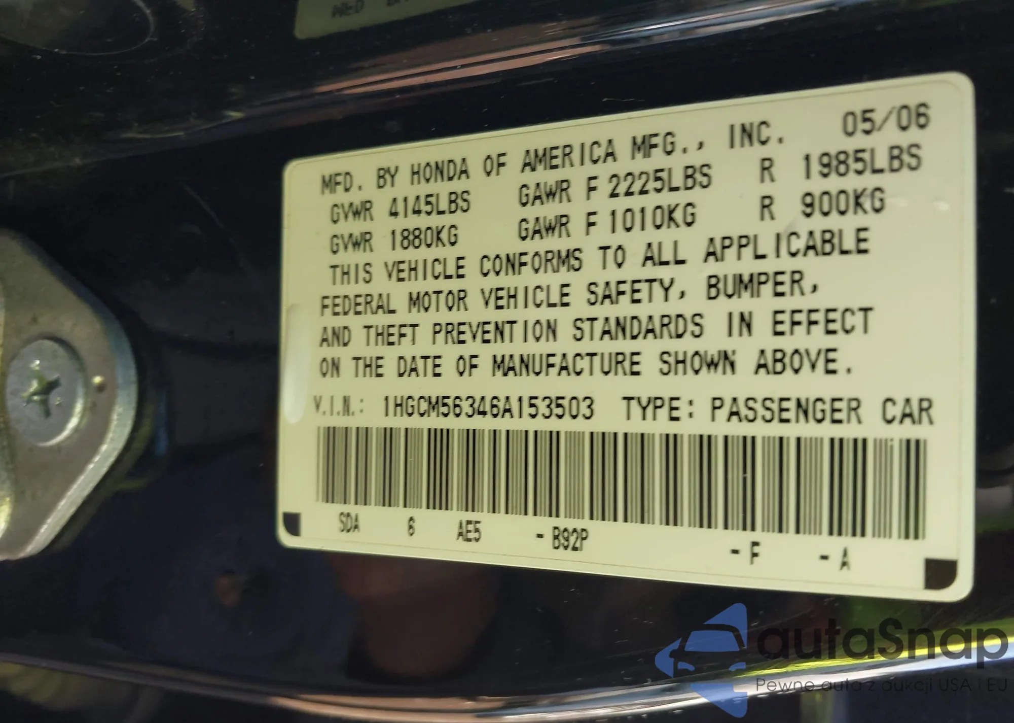 VIN: 1HGCM56346A153503