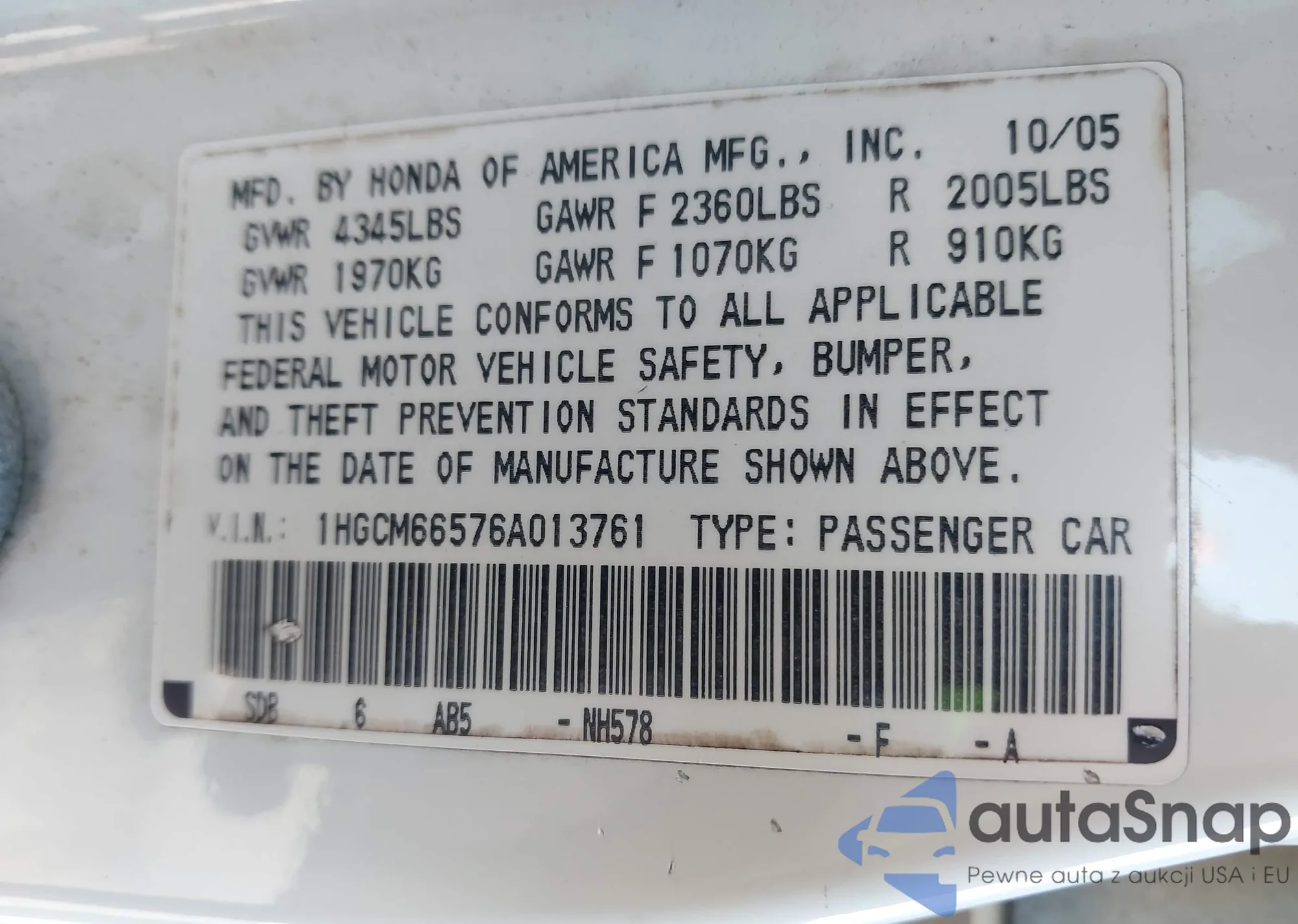 VIN: 1HGCM66576A013761