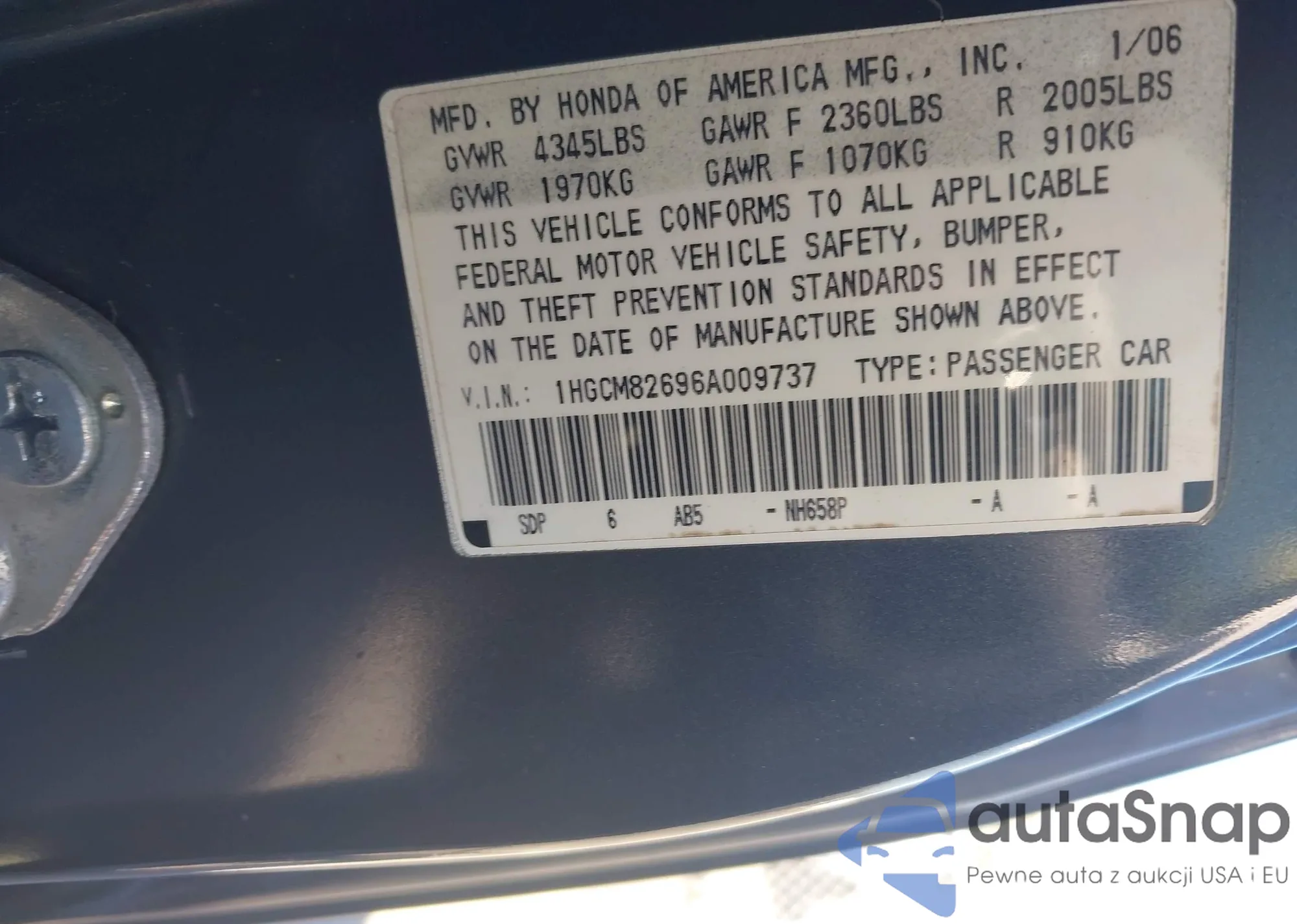 VIN: 1HGCM82696A009737
