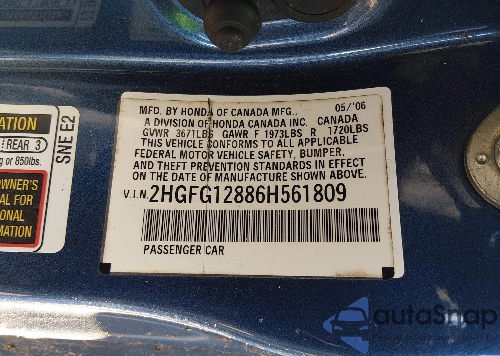 VIN: 2HGFG12886H561809
