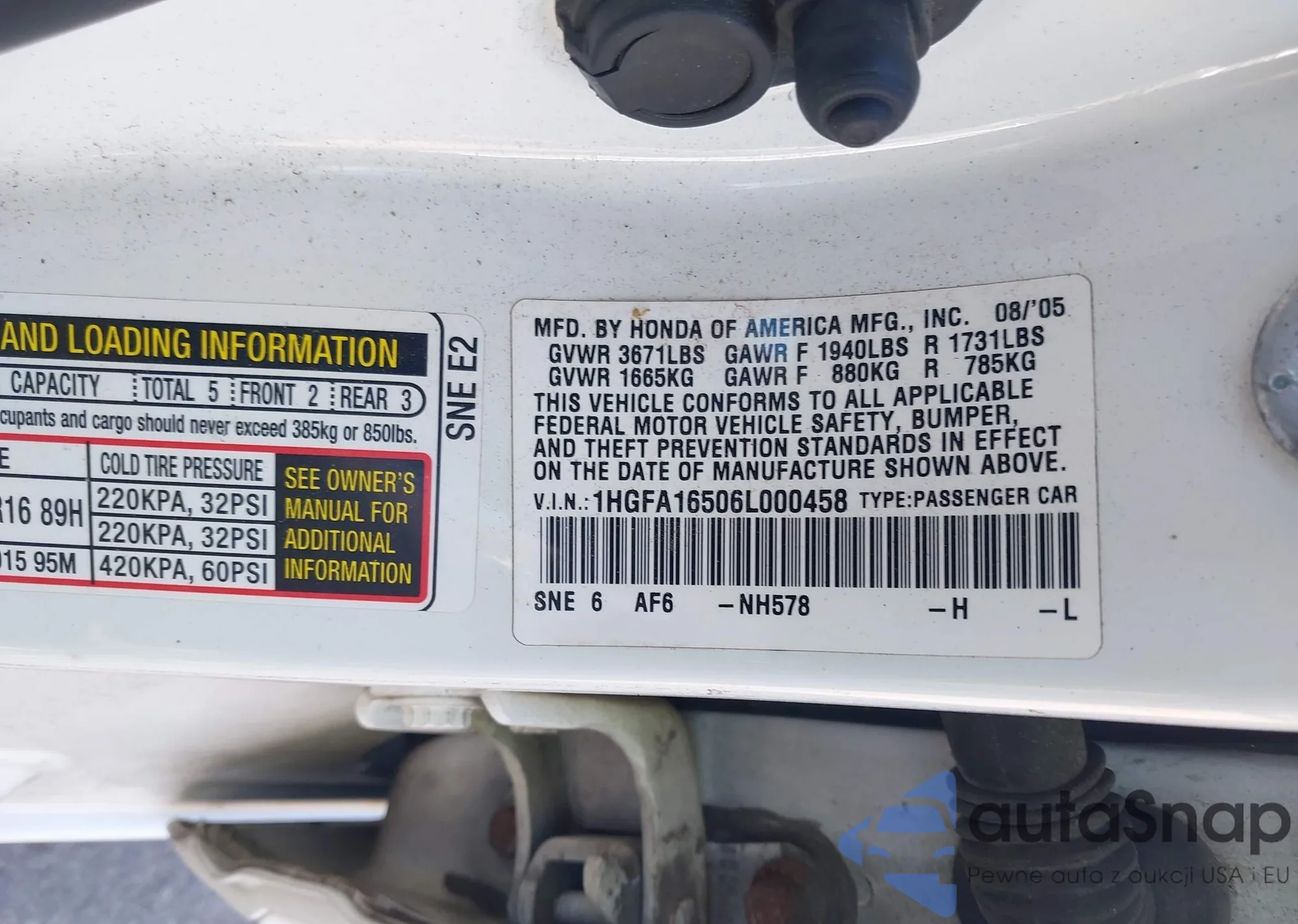 VIN: 1HGFA16506L000458
