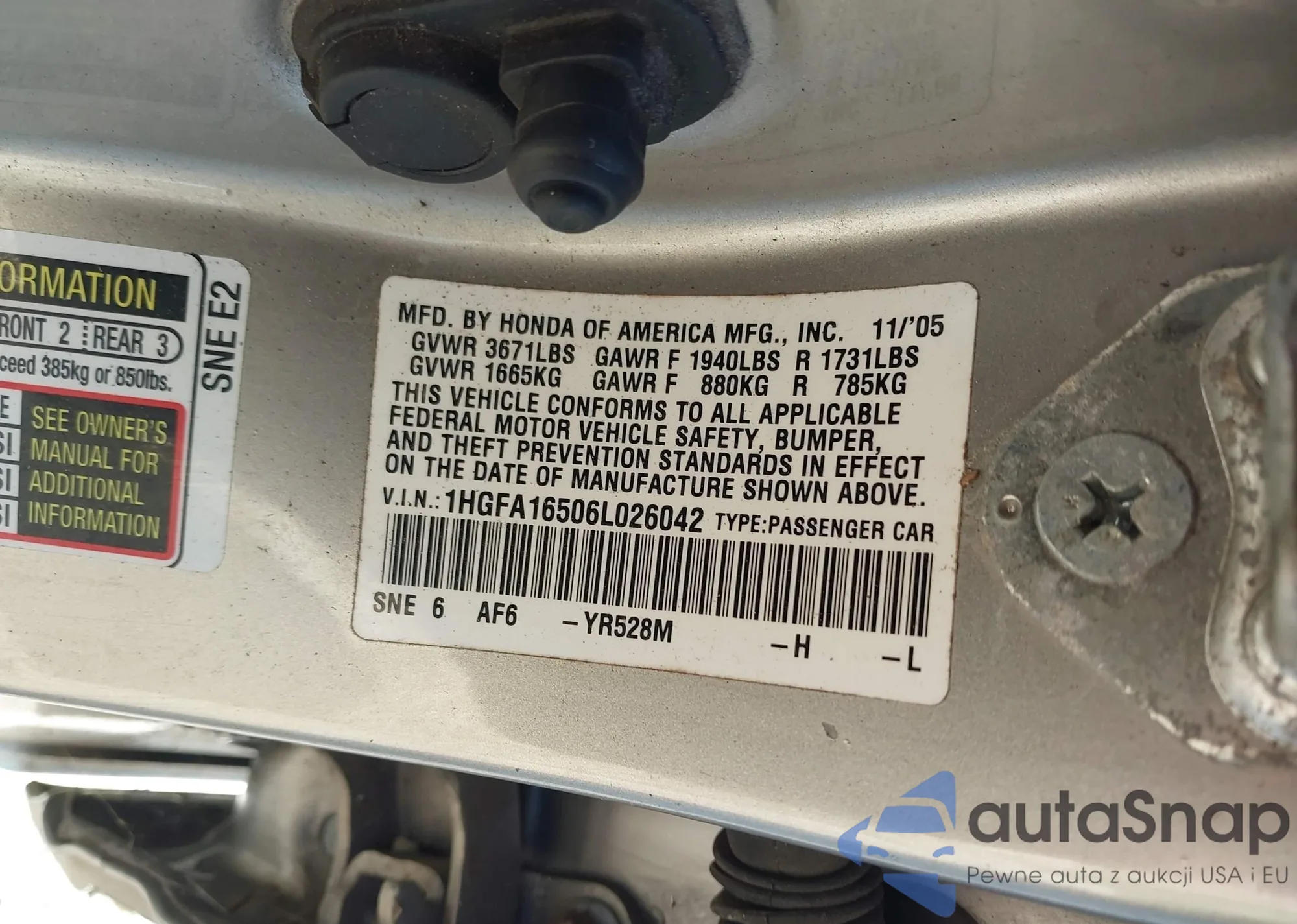 VIN: 1HGFA16506L026042