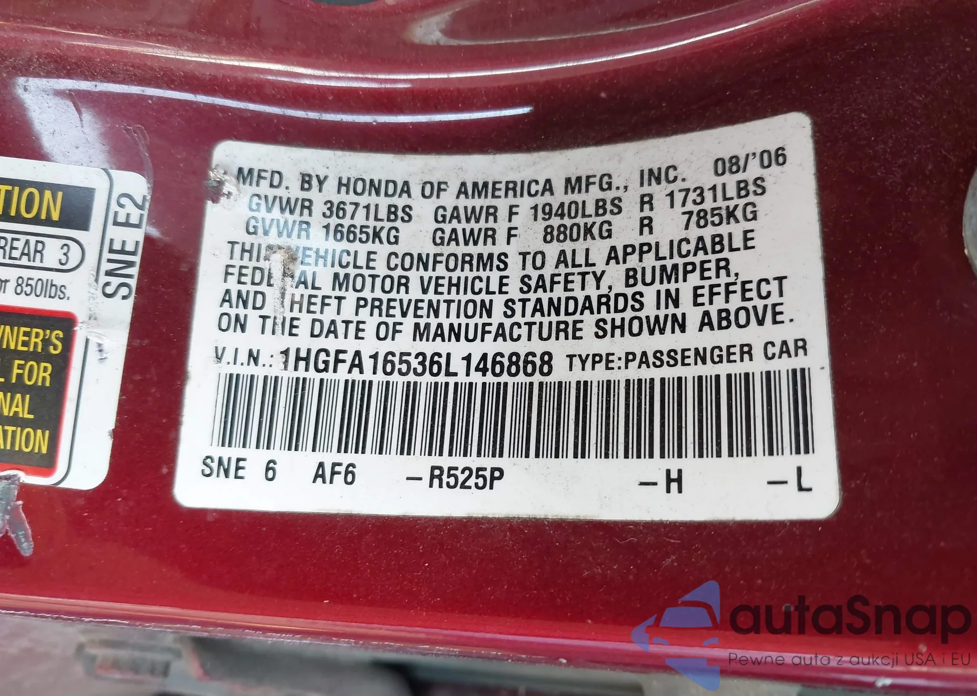 VIN: 1HGFA16536L146868