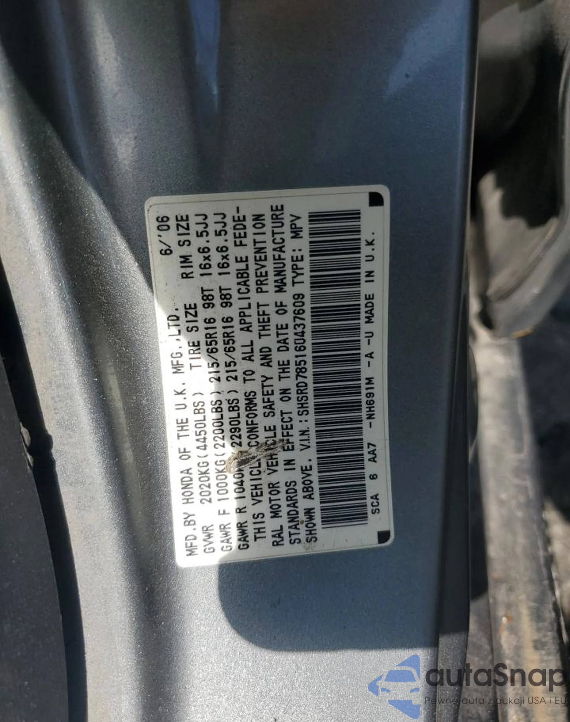 VIN: SHSRD78516U437609