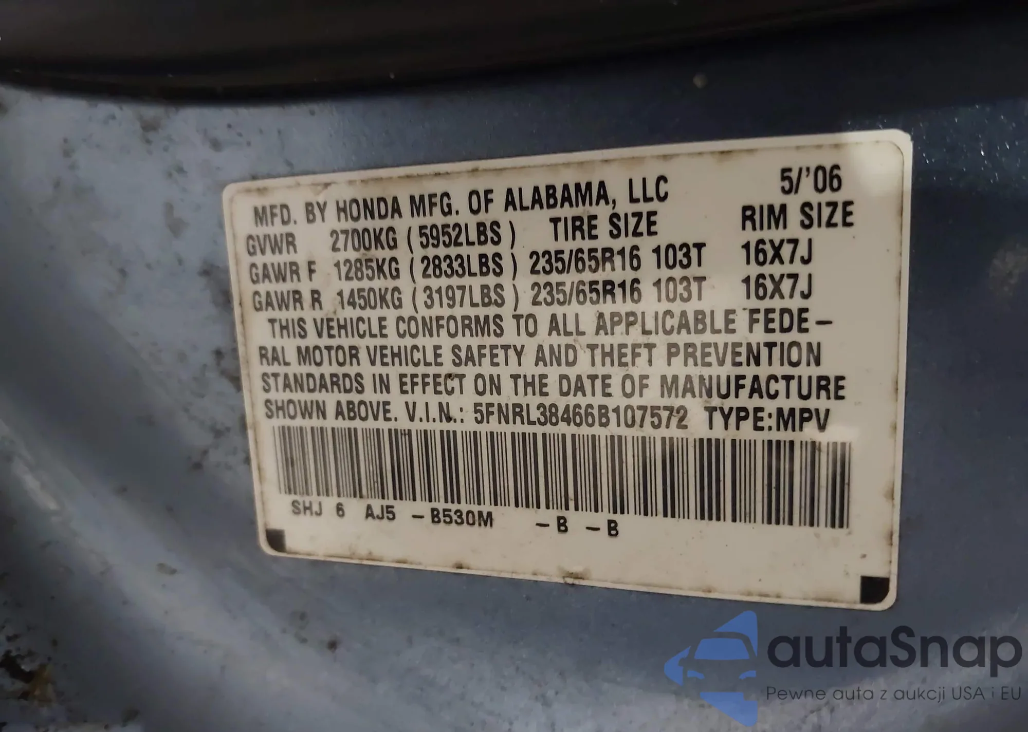 VIN: 5FNRL38466B107572