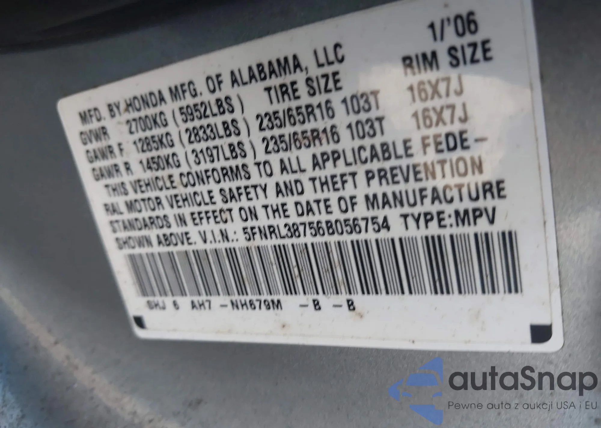 VIN: 5FNRL38756B056754
