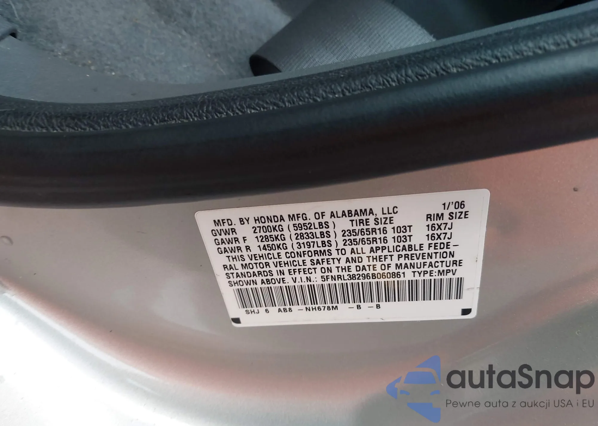 VIN: 5FNRL38296B060861