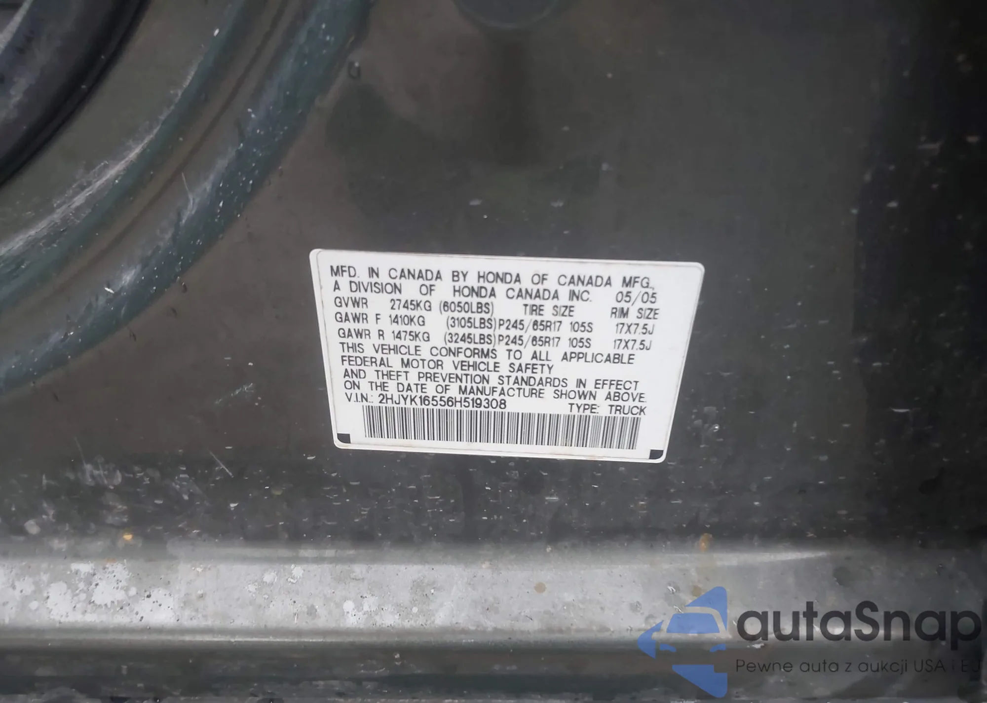 VIN: 2HJYK16556H519308