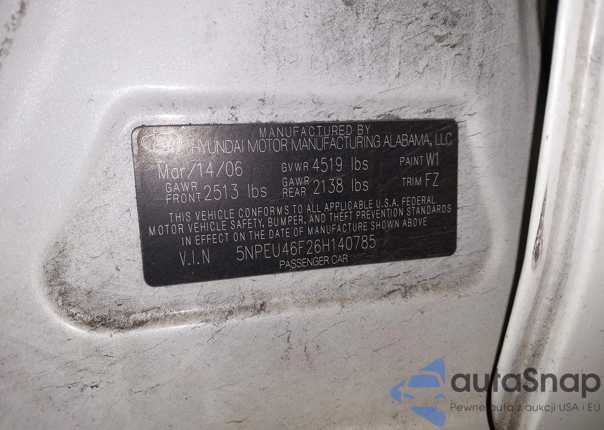 The car Hyundai Sonata 2006 (VIN 5NPEU46F26H140785) has not been auctioned before. The documents are clean, and the mileage matches or is below the market average. Sold by an insurance company – we recommend purchase. Delivery to the port will take approx. 6–8 weeks.