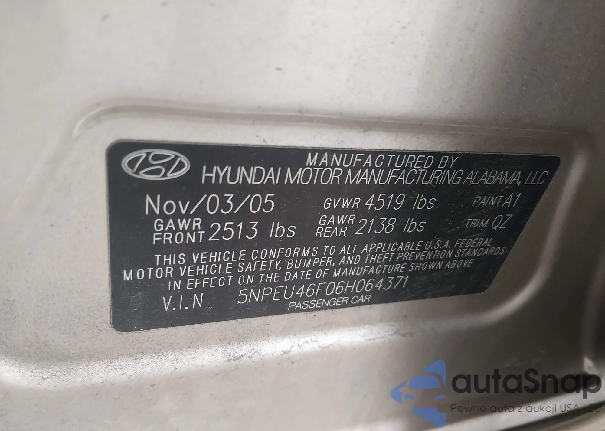 The car Hyundai Sonata 2006 (VIN 5NPEU46F06H064371) is sold by an unverified seller. We recommend checking the Carfax report and confirming registration possibilities before purchase.