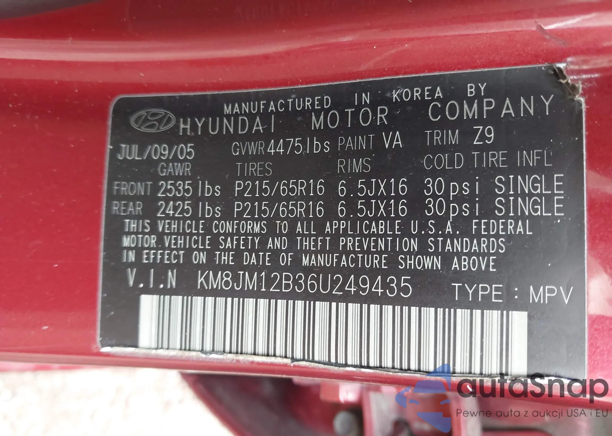 VIN: KM8JM12B36U249435