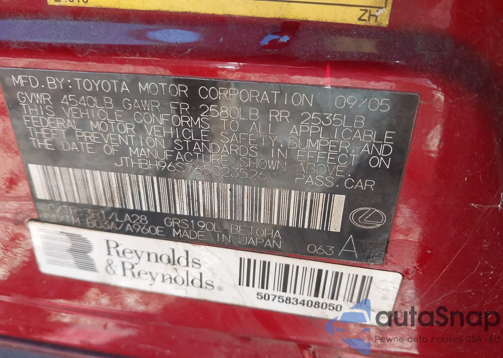 The car Lexus GS 300 2006 (VIN JTHBH96S765023526) is sold by an unverified seller. We recommend checking the Carfax report and confirming registration possibilities before purchase.
